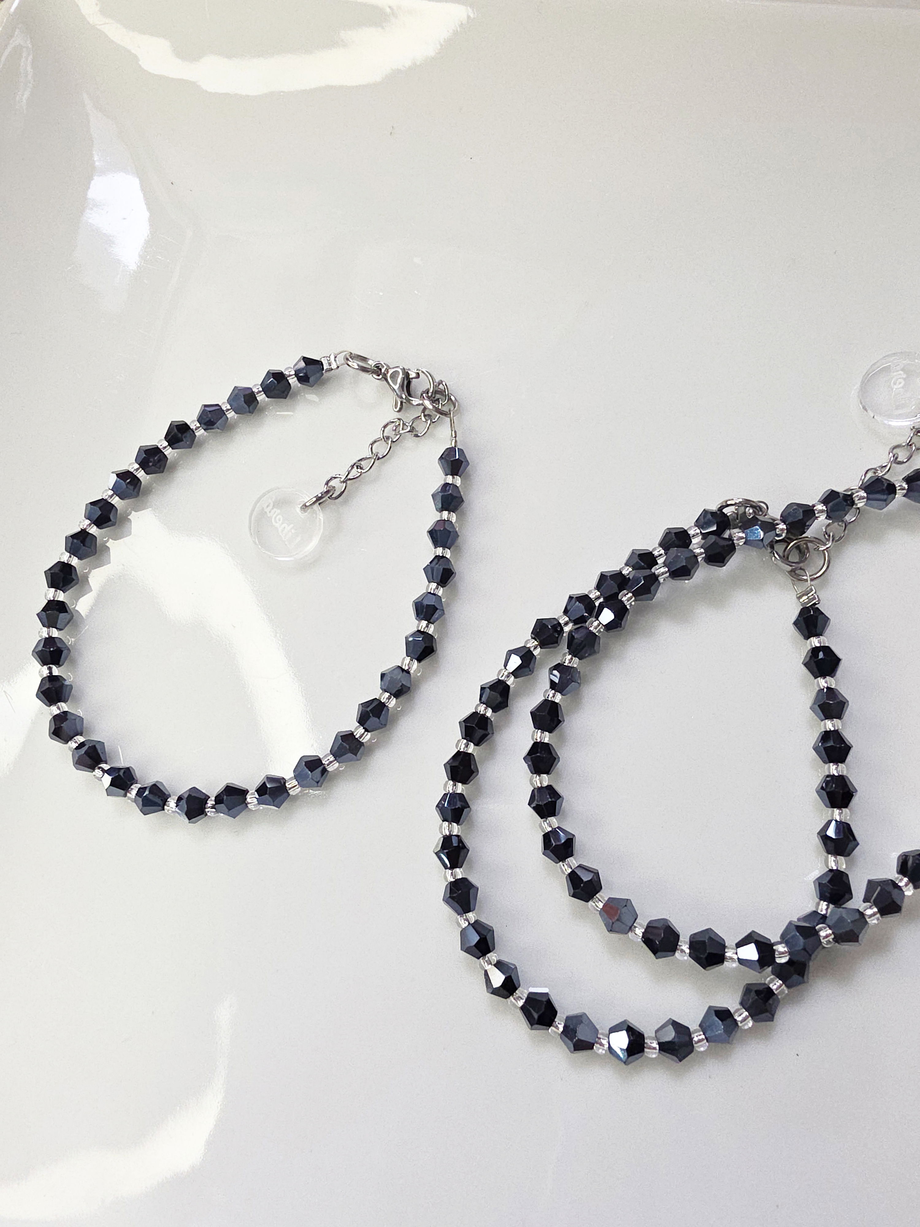 Pulsera compuesta por cristales cónicos intercalados por Mostacillas calibradas de vidrio. (Insumos de origen Checo) Cierre y cadena de alargue de Acero Quirúrgico 316l.