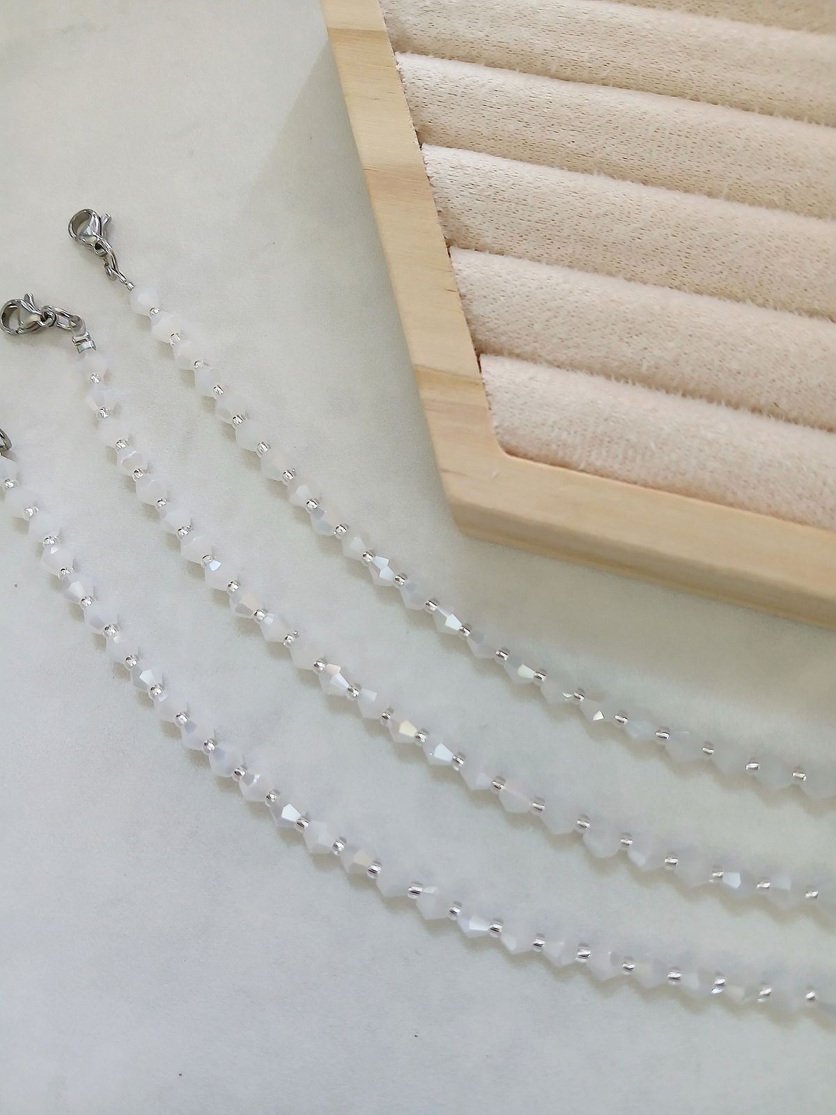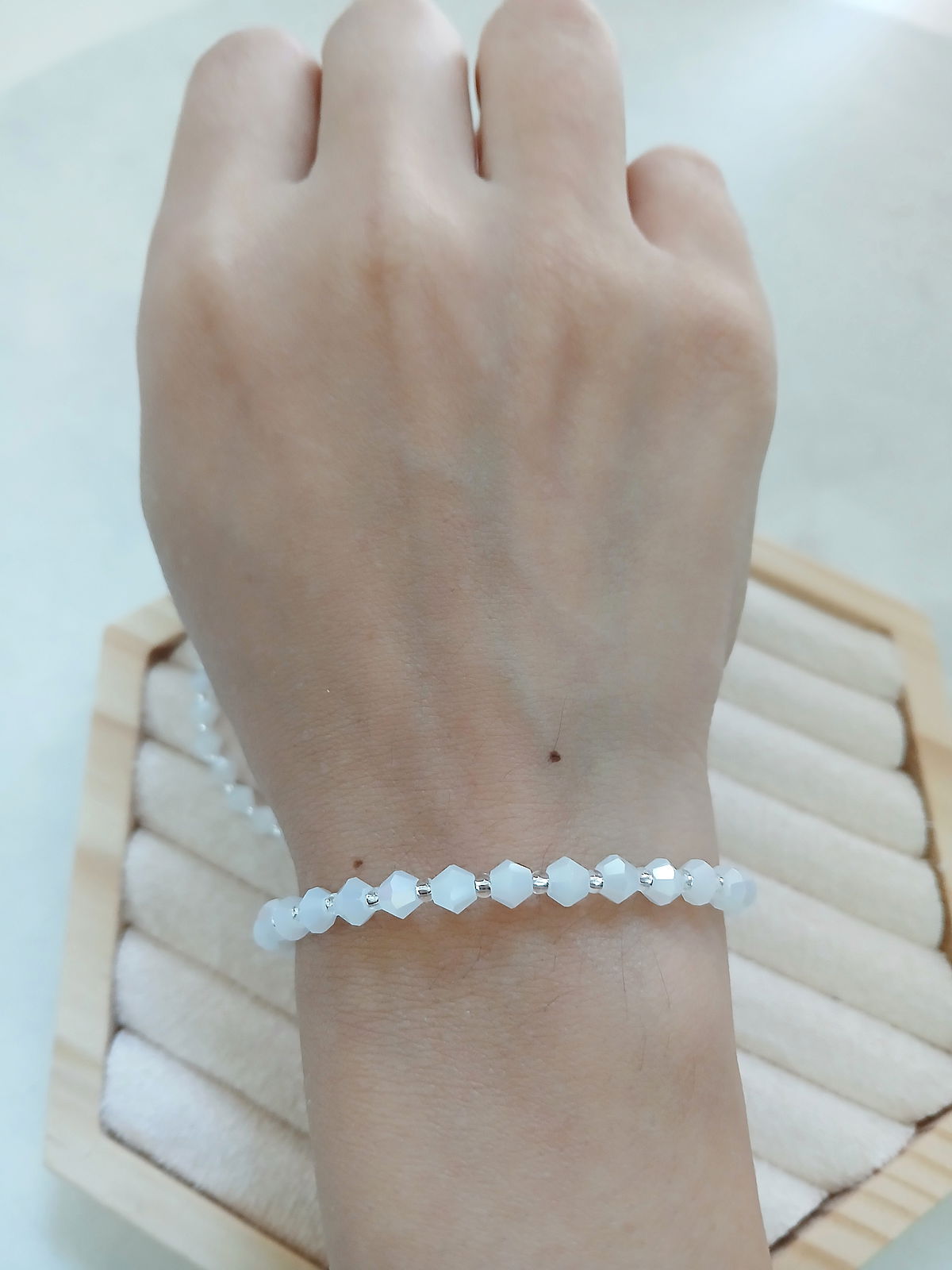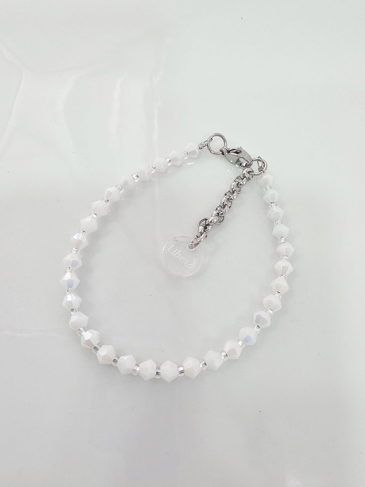Pulsera compuesta por cristales intercalados con Mostacillas Checas calibradas marca Preciosa, cierre y cadena de alargue de Acero Quirúrgico 316l.