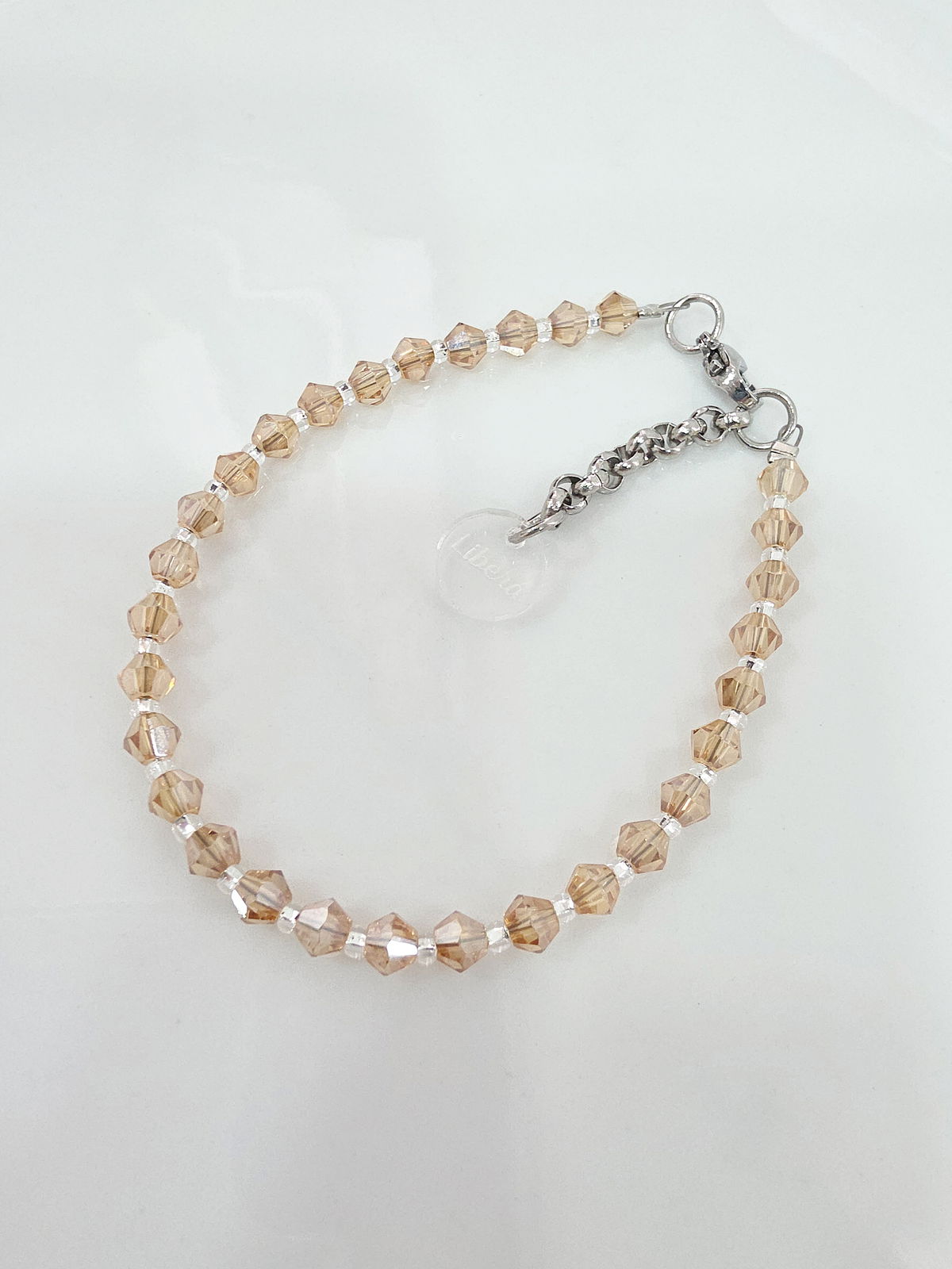Pulsera compuesta por cristales intercalados con Mostacillas Checas calibradas marca Preciosa, cierre y cadena de alargue de Acero Quirúrgico 316l.