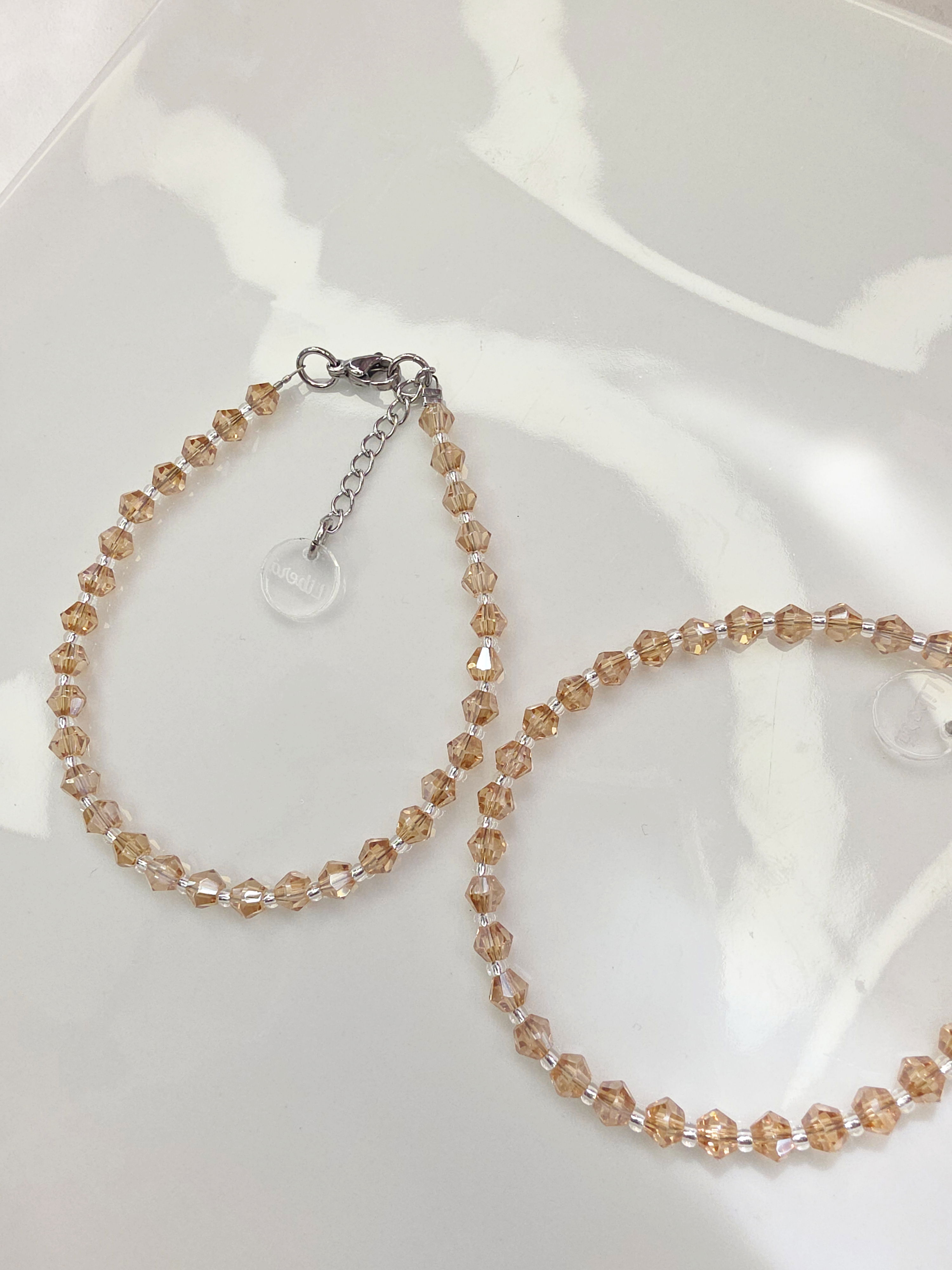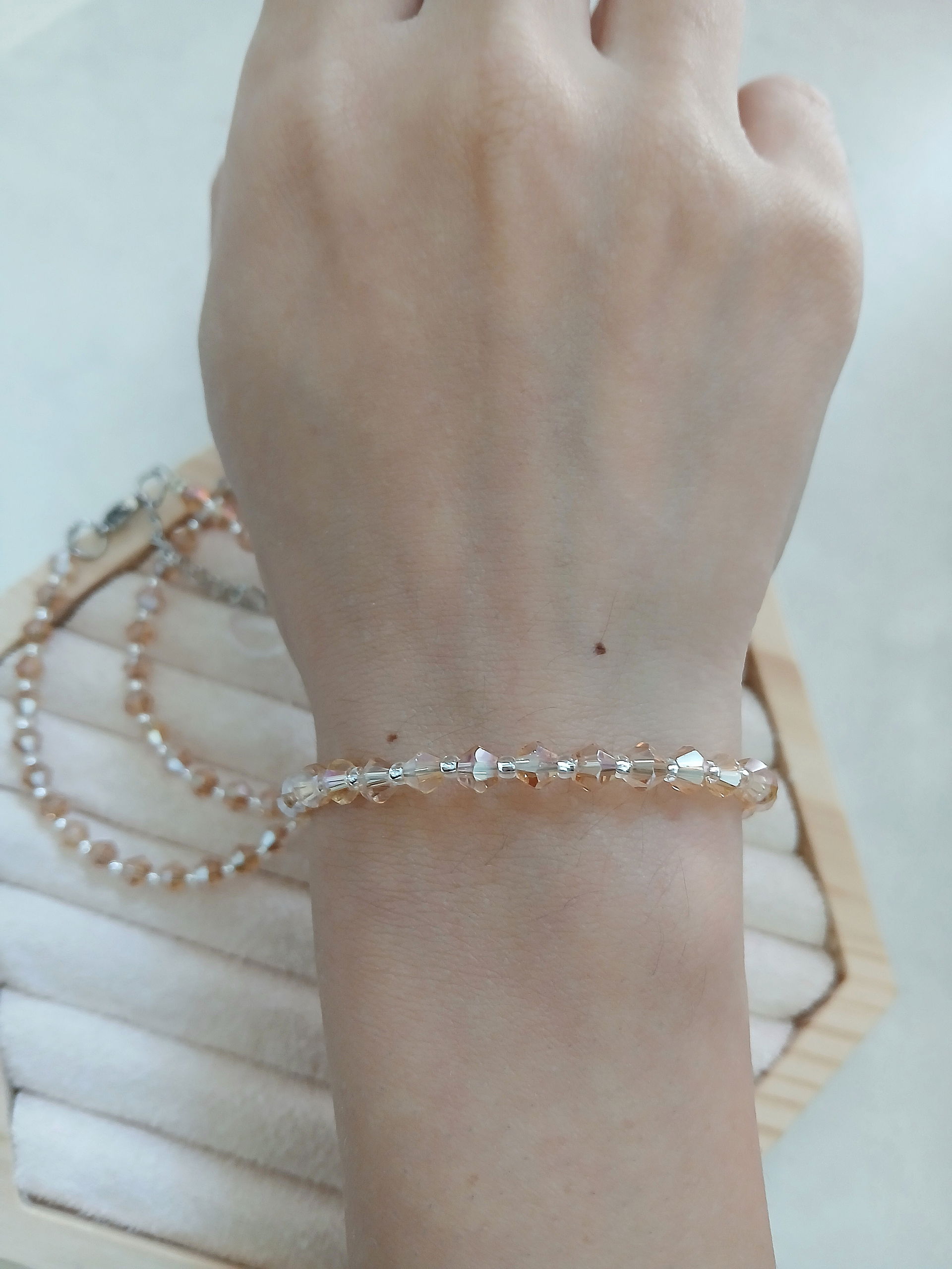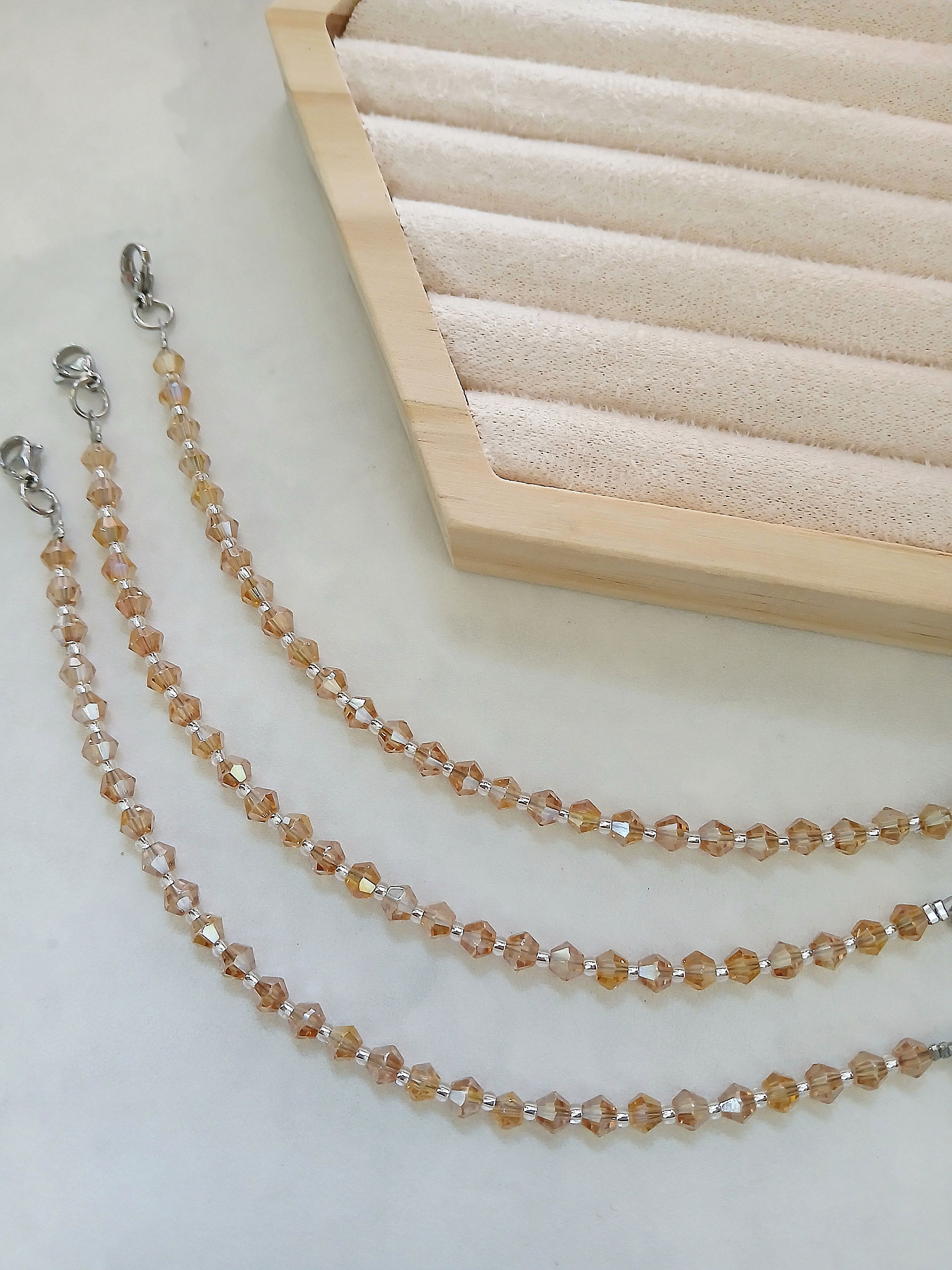 Pulsera compuesta por cristales intercalados con Mostacillas Checas calibradas marca Preciosa, cierre y cadena de alargue de Acero Quirúrgico 316l.