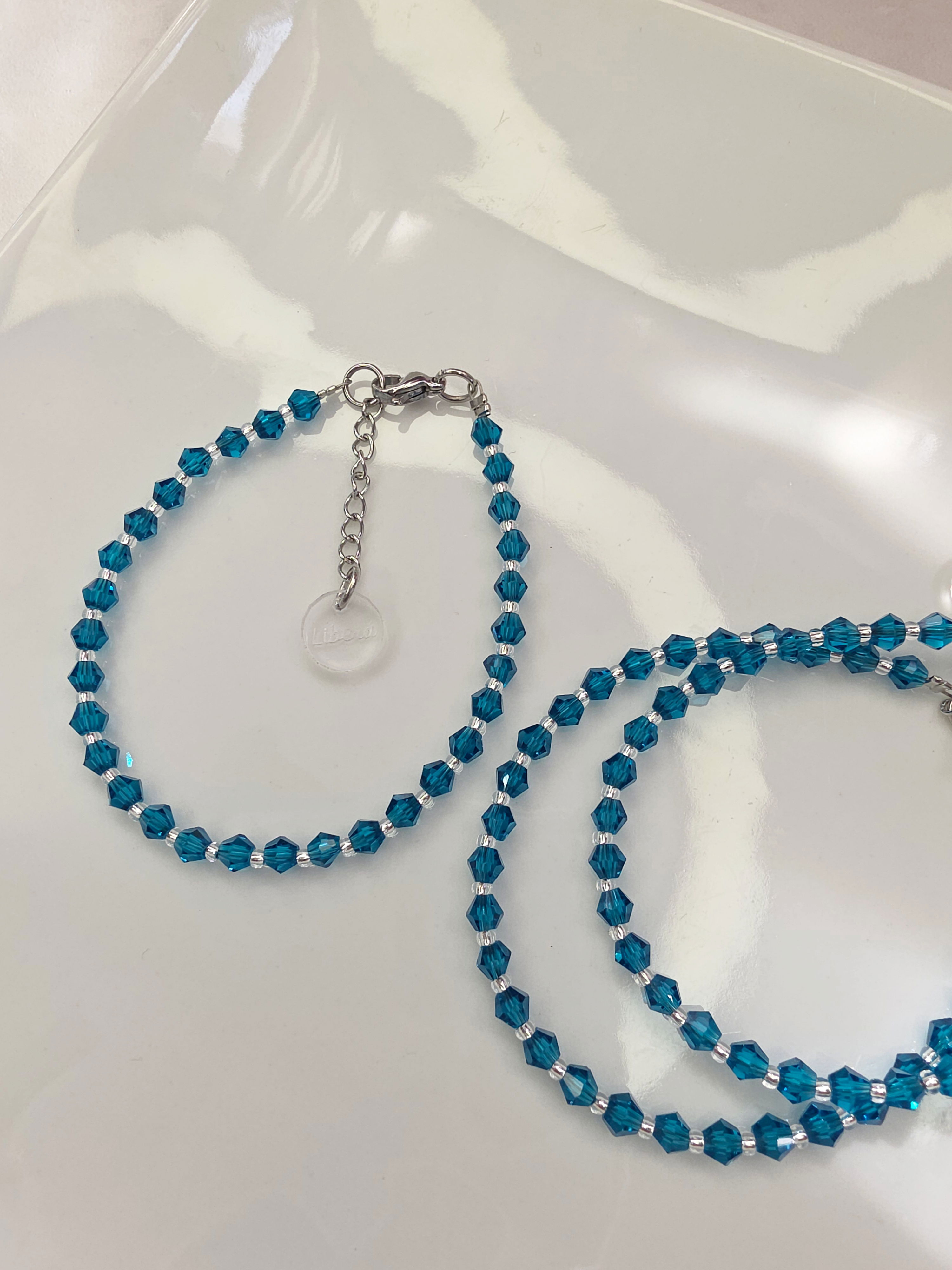 Pulsera compuesta por cristales intercalados con Mostacillas Checas calibradas marca Preciosa, cierre y cadena de alargue de Acero Quirúrgico 316l.