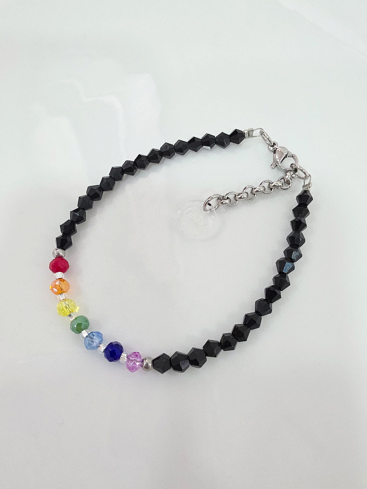 Pulsera compuesta por cristales. Detalles, cierre y cadena de alargue de Acero Quirúrgico 316l. Apta agua e Hipoalergénica.