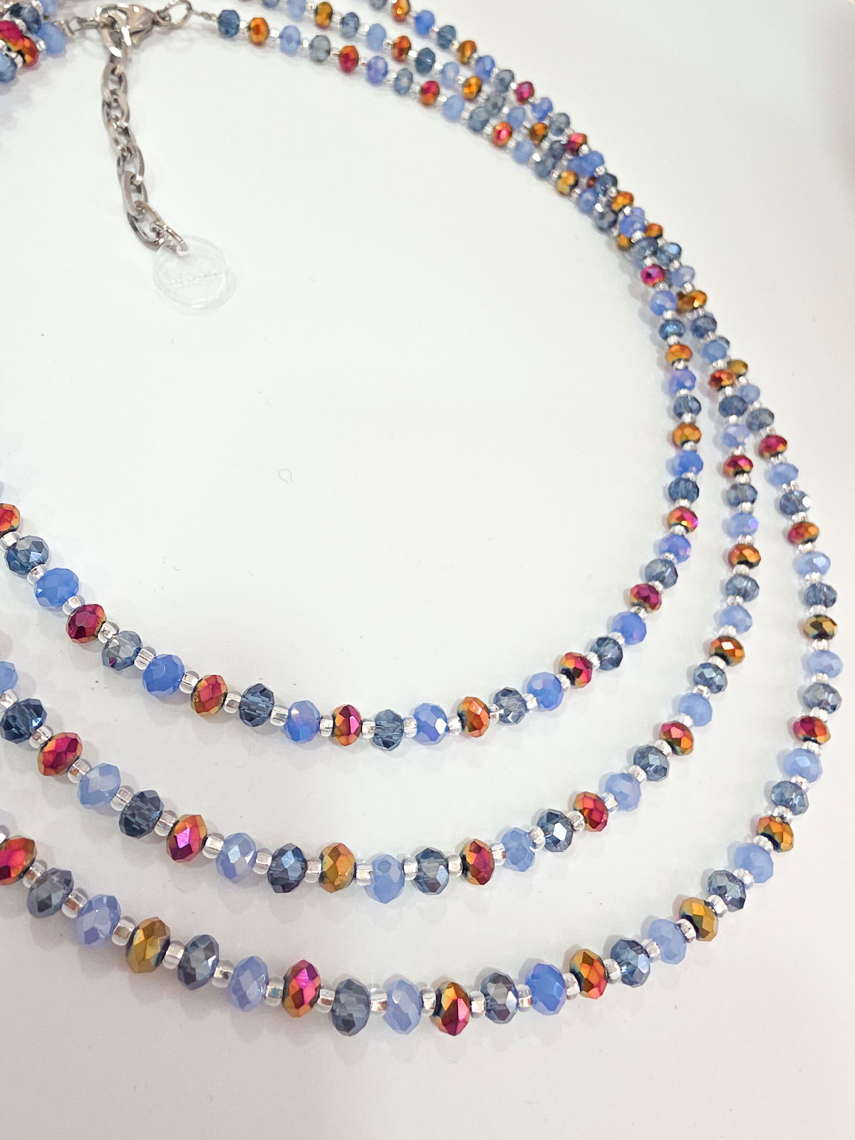 Collar de aproximadamente 40 cm (más cadena de alargue) compuesto por cristales y mostacillas Checas calibradas marca Preciosa.
