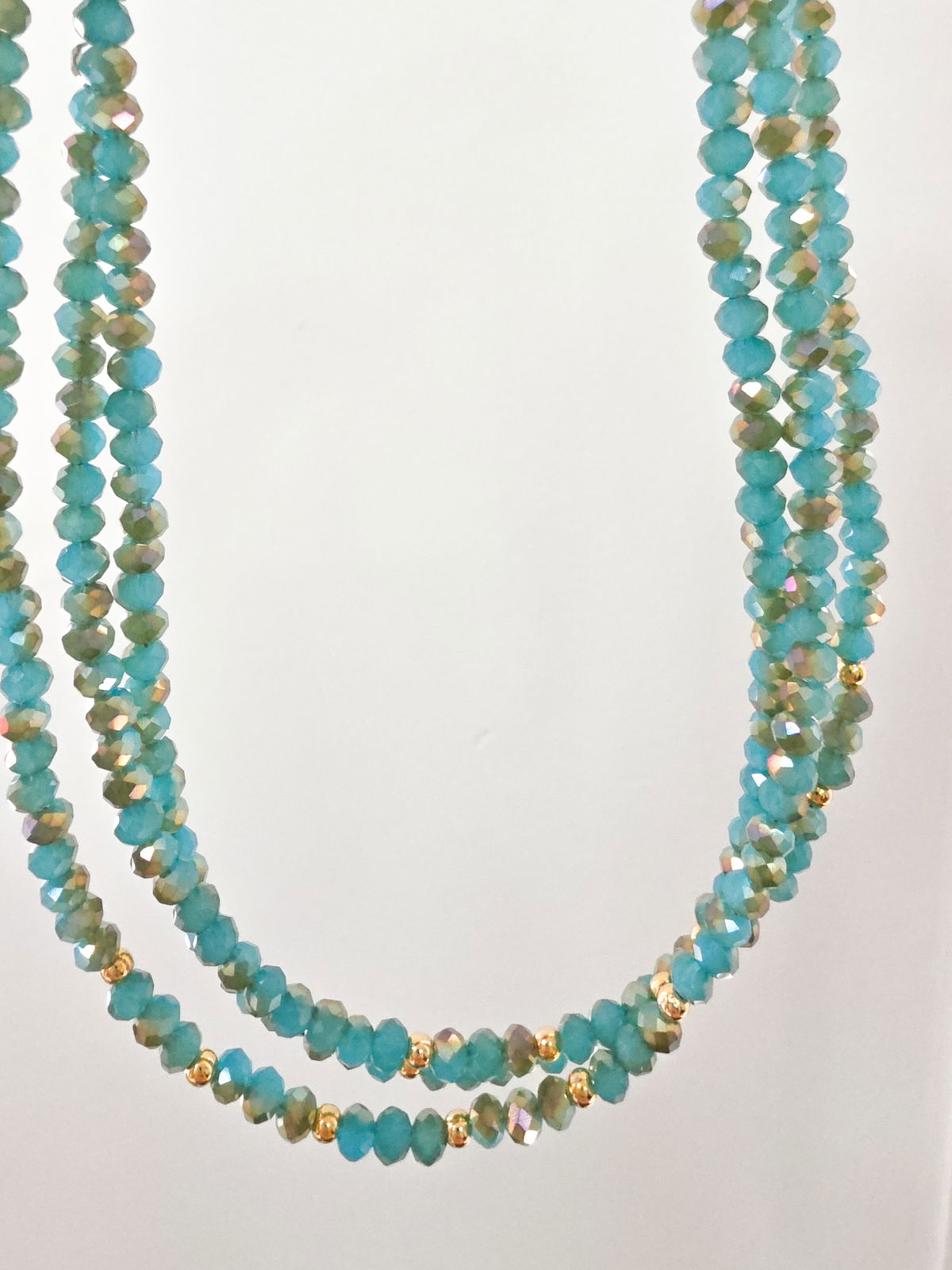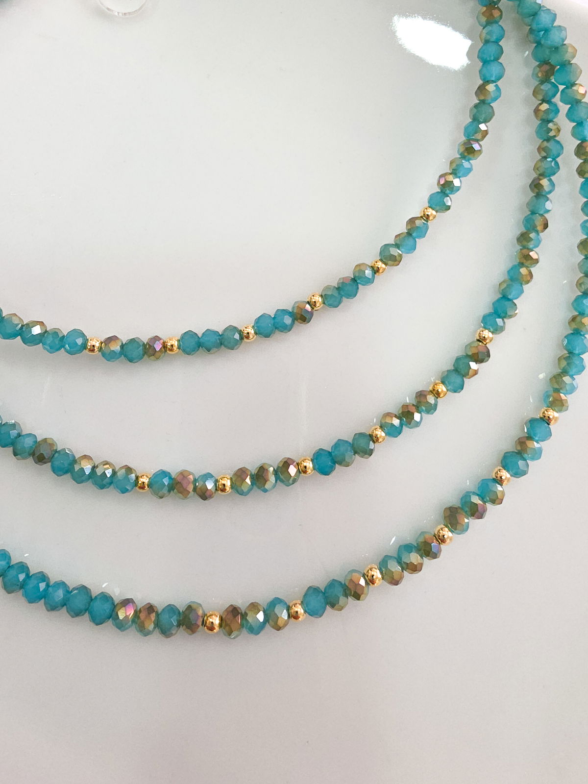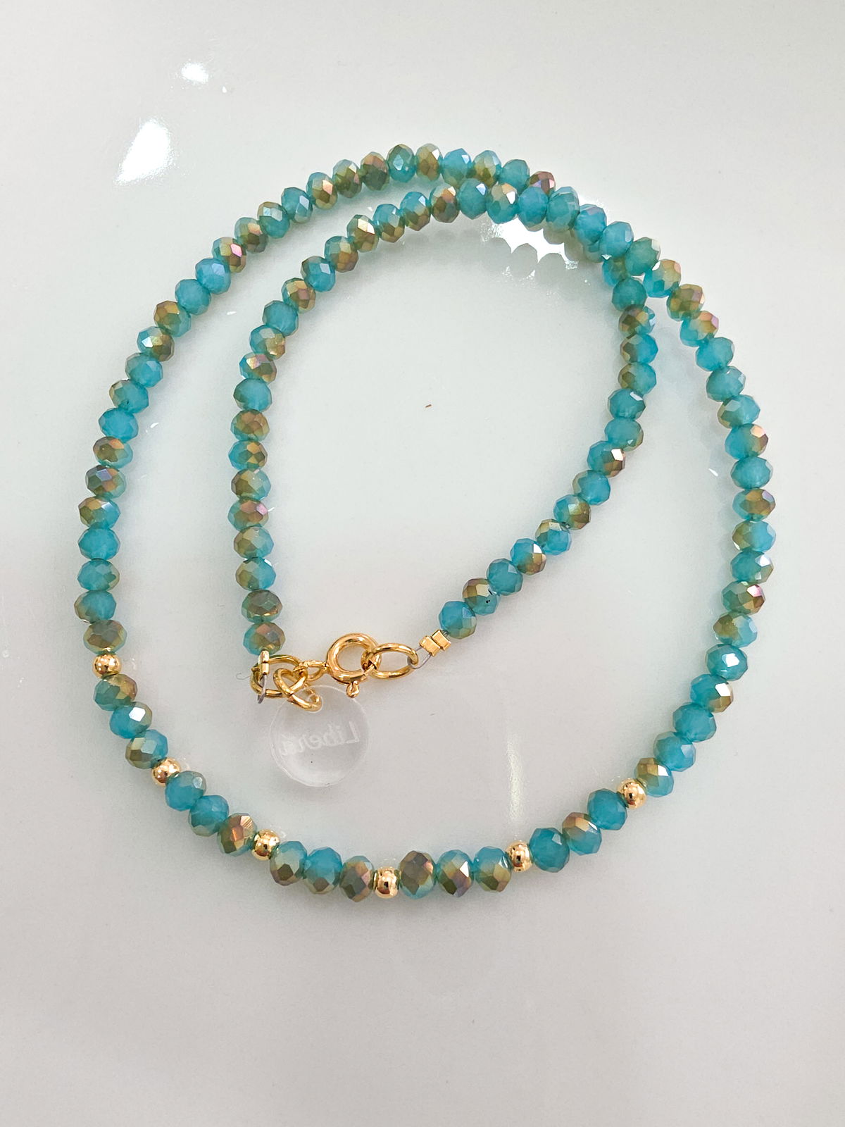 Collar de aproximadamente 43 cm, compuesto por cristales y bolitas laminadas en Oro.