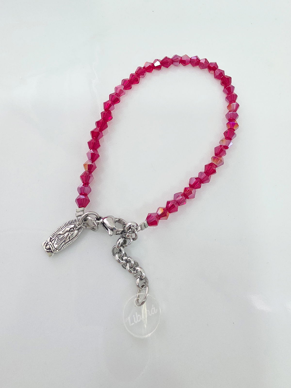 Pulsera compuesta por cristales. Cierre y cadena de alargue de Acero Quirúrgico 316l. Dije Virgencita de fundición (excelente calidad)