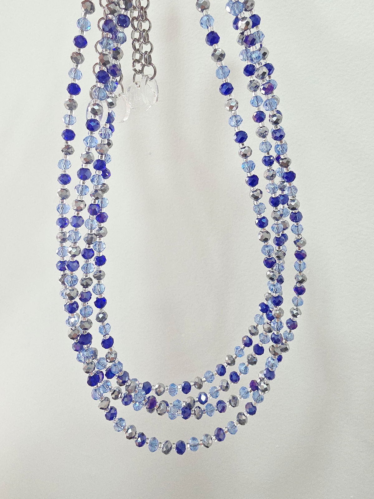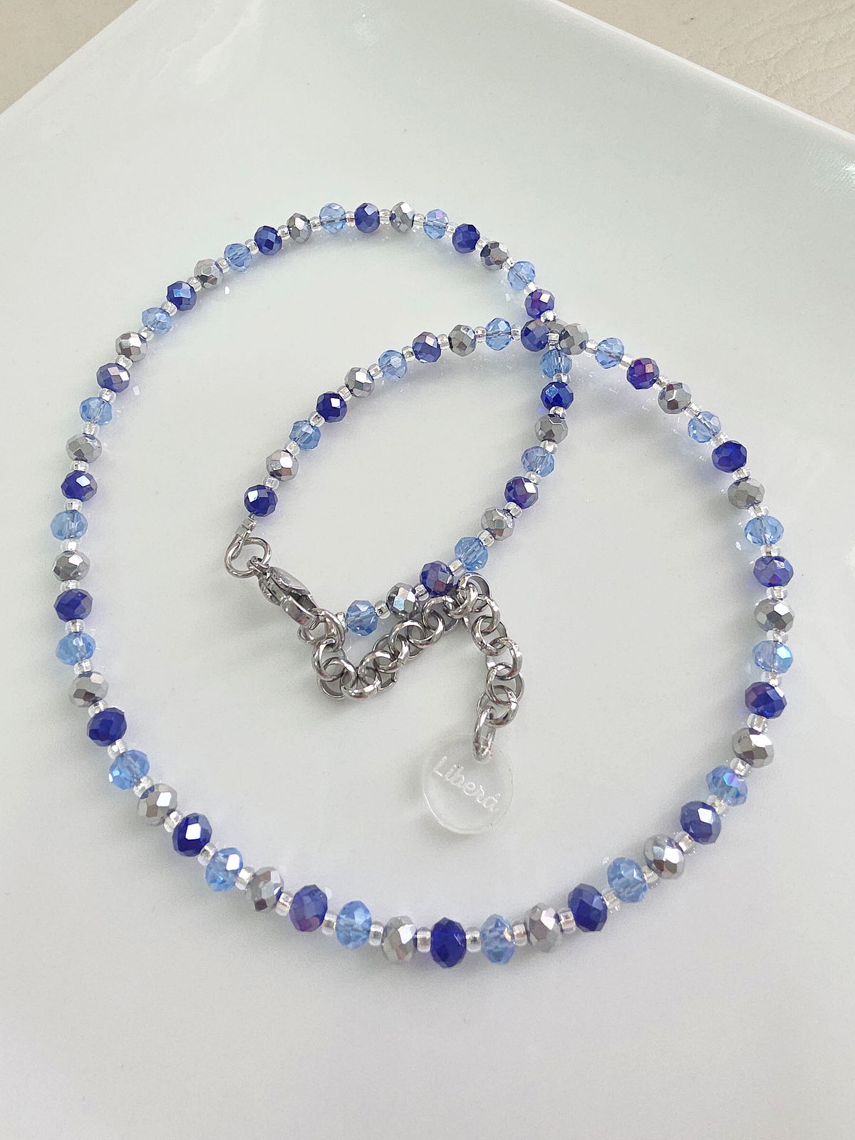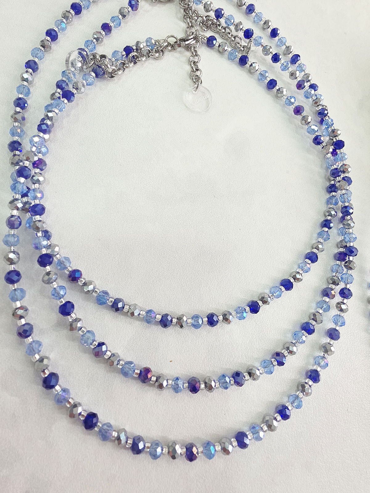 Collar de aproximadamente 40 cm, más cadena de alargue. Compuesto por cristales de diferentes tonos y mostacillas Checas calibradas marca Preciosa. Cierre, cadena y detalles de Acero Quirúrgico 316l. Apto agua e hipoalergénico.