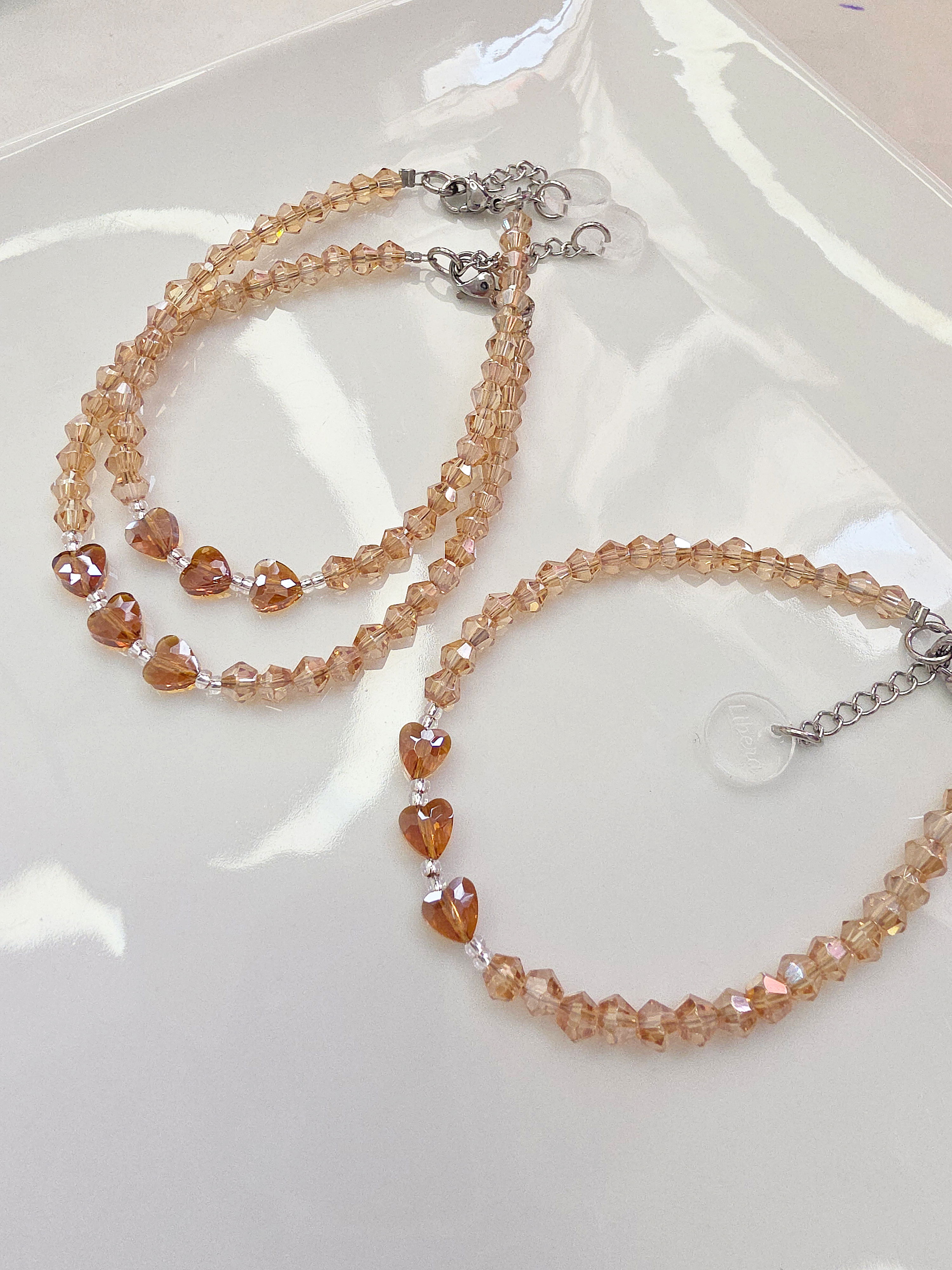 PULSERA - CORAZONES CRISTAL CARAMELO