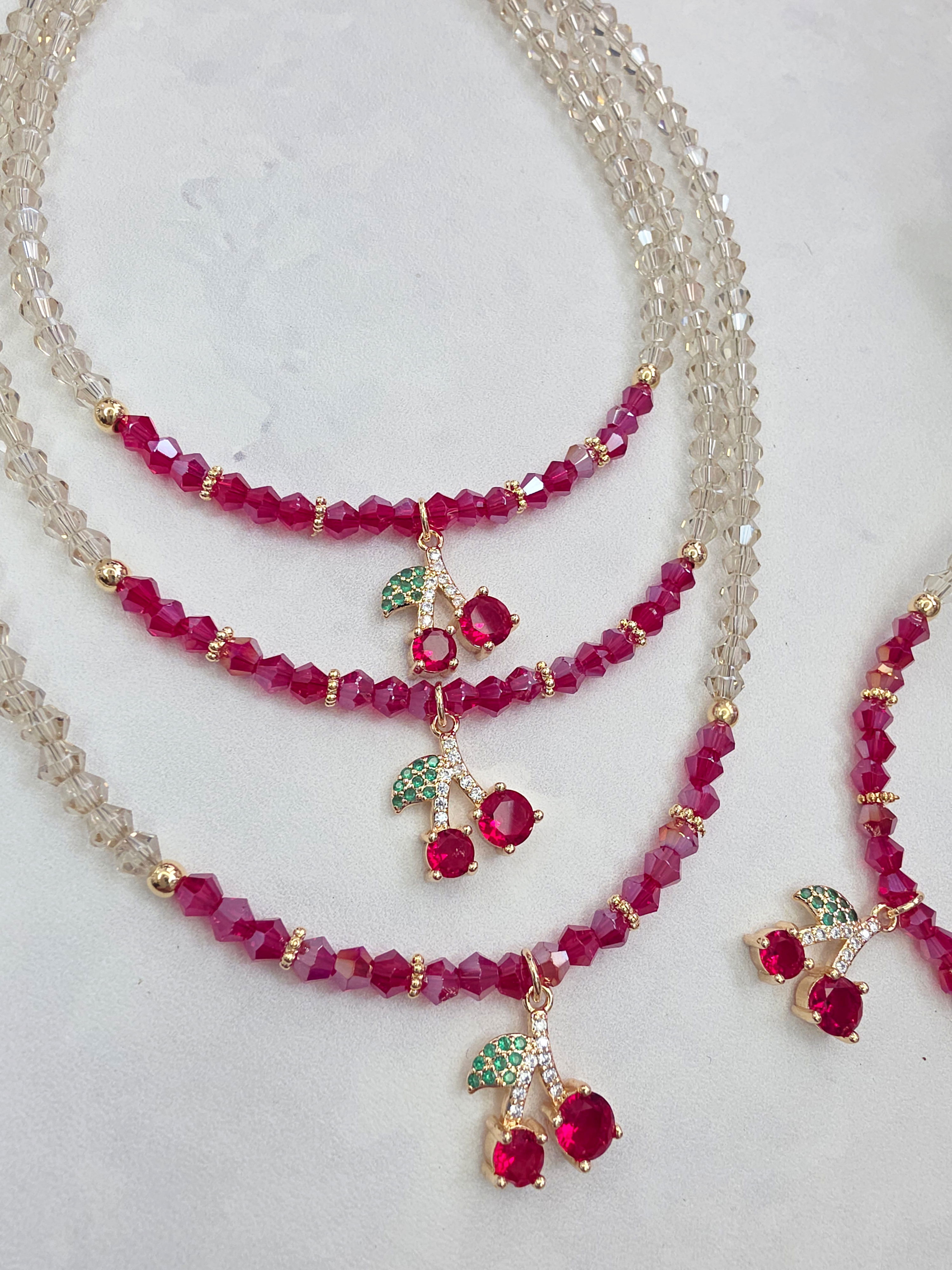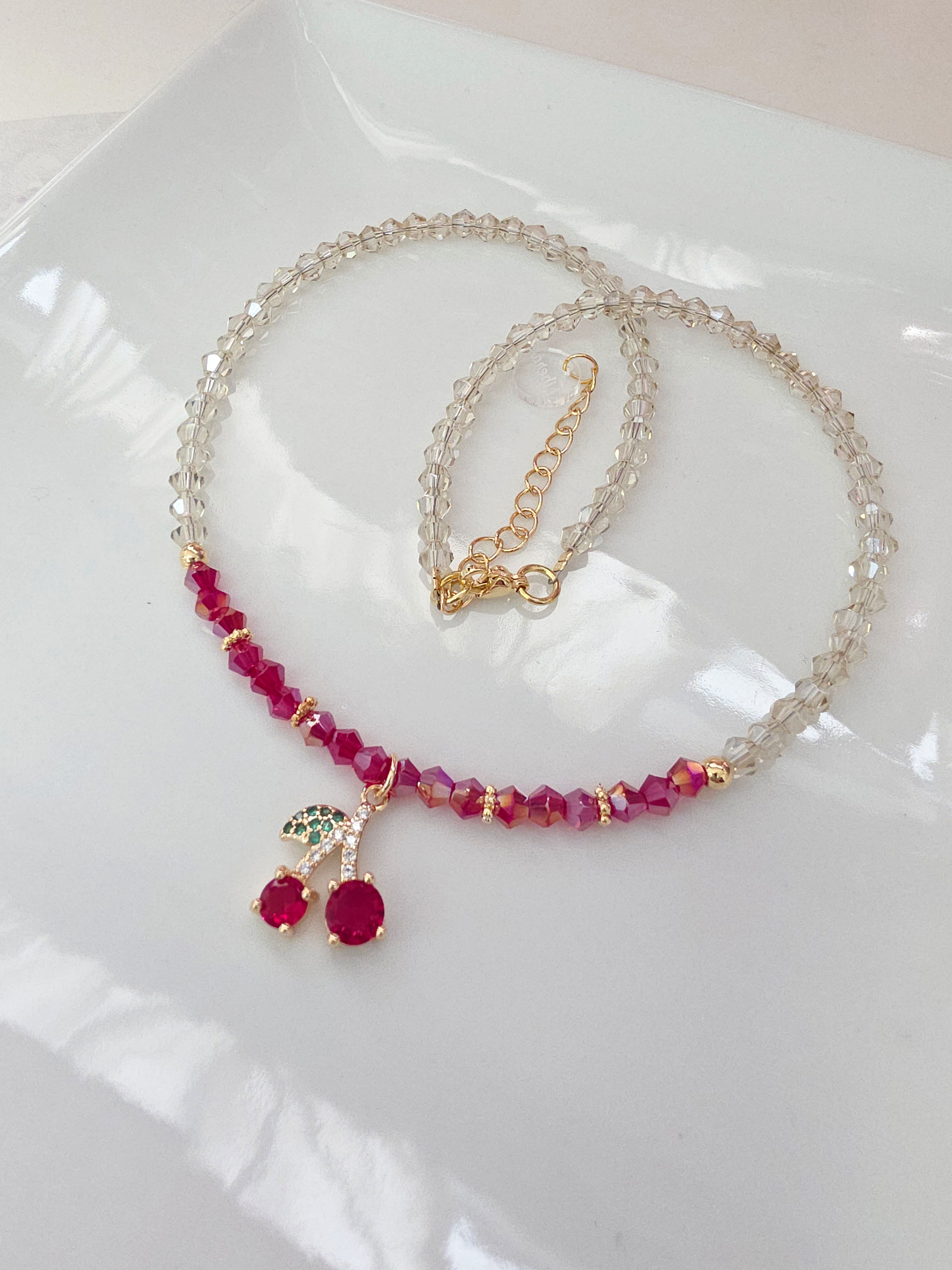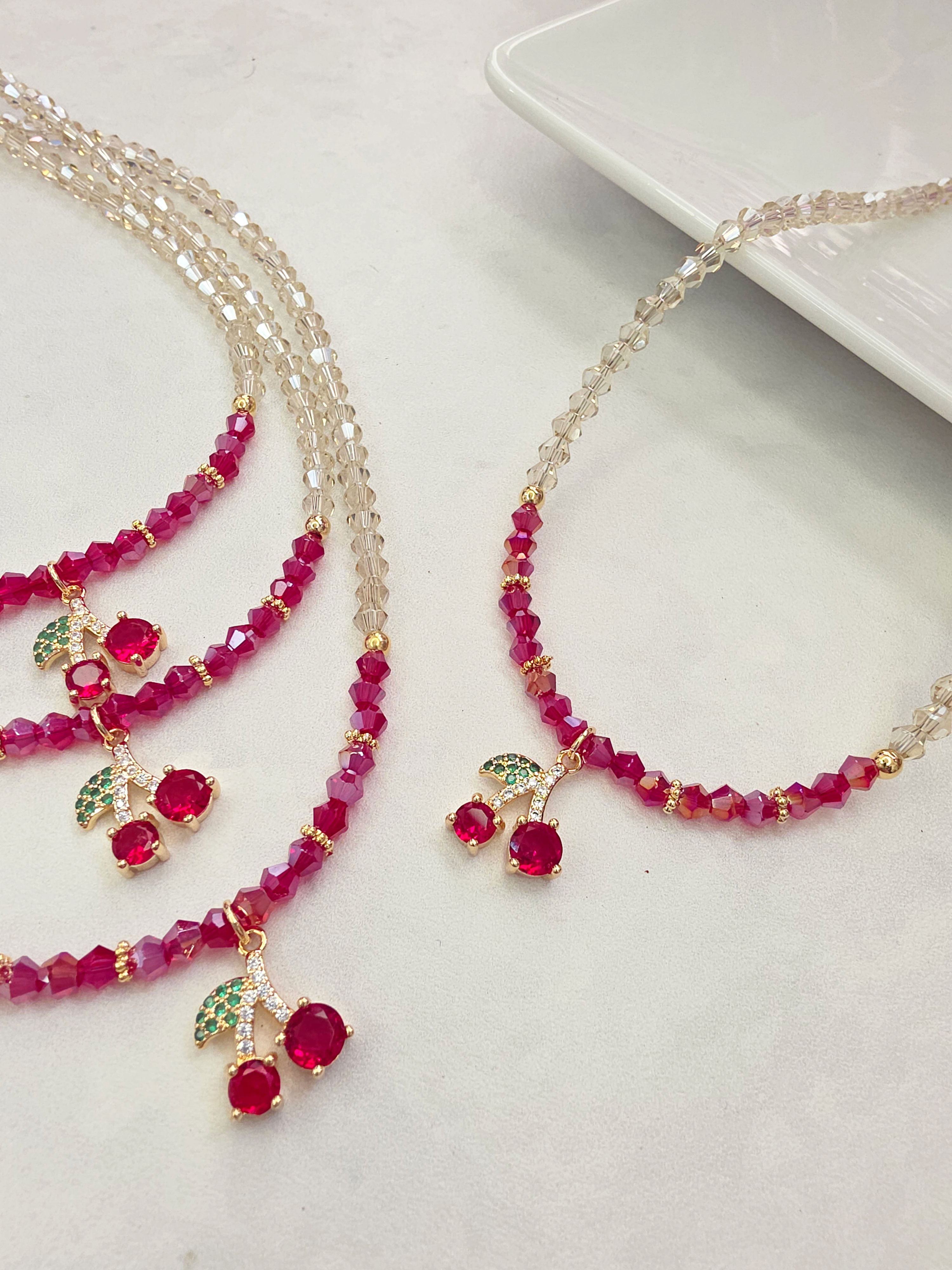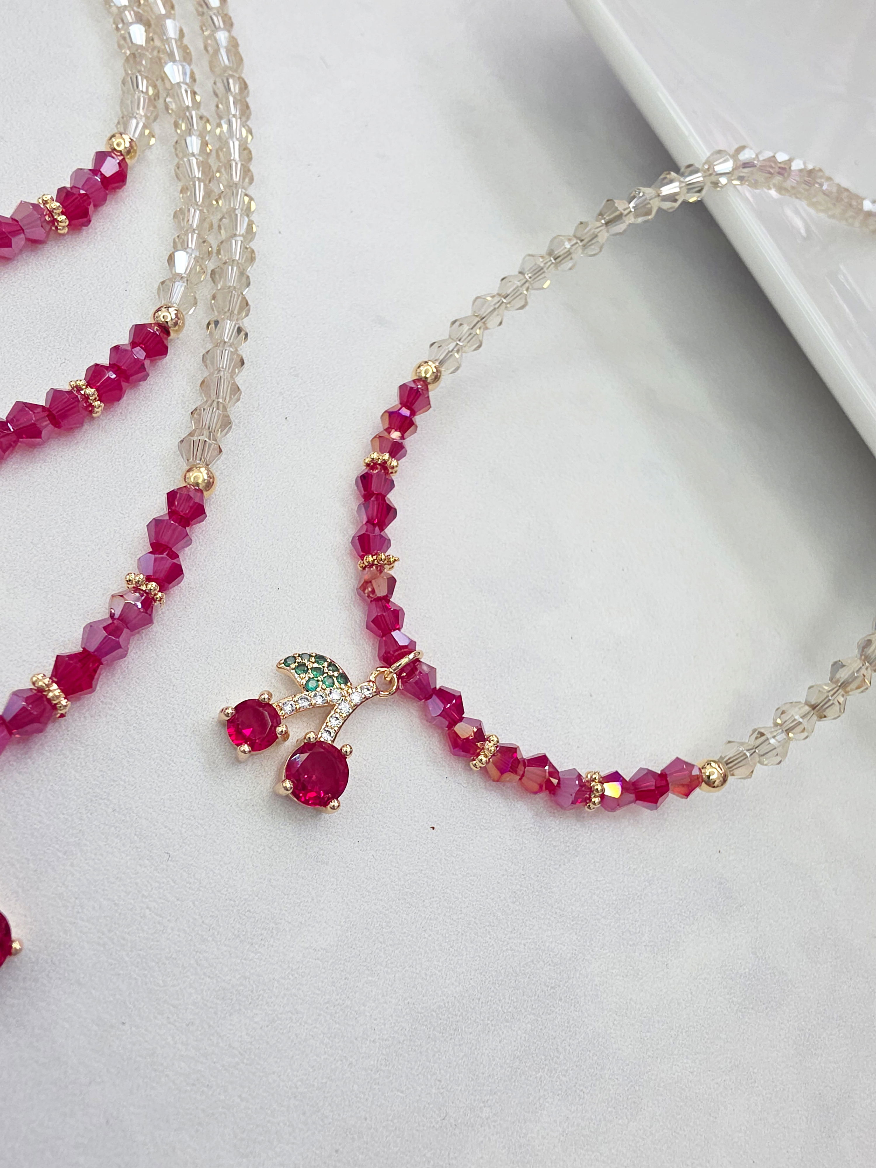 Collar de aproximadamente 40 cm más cadena de alargue. Compuesto por Cristales y dije Laminado en Oro 18k con Microzirconias y Cubics. Detalles, cierre y cadena de Oro Laminado 18k.