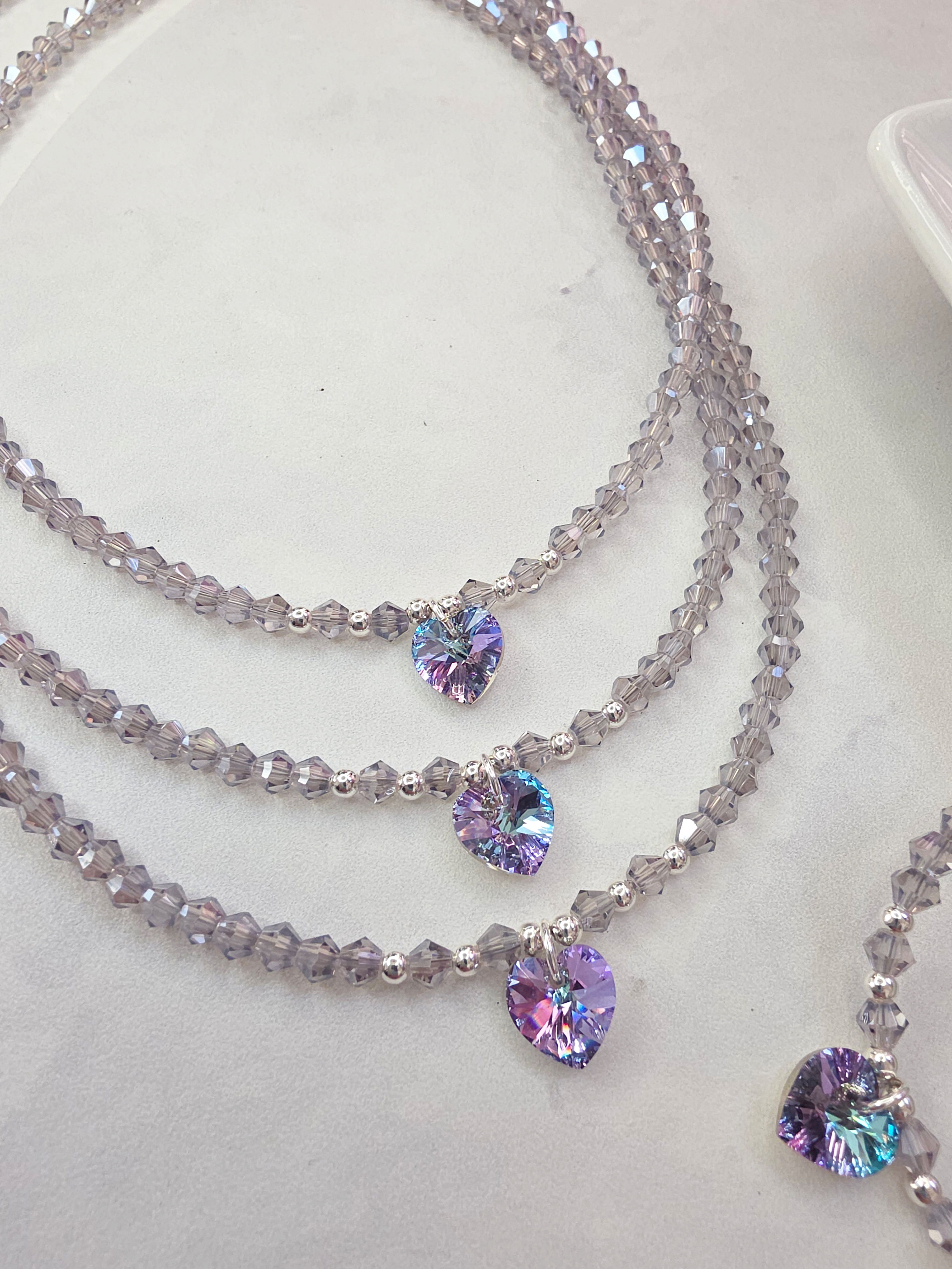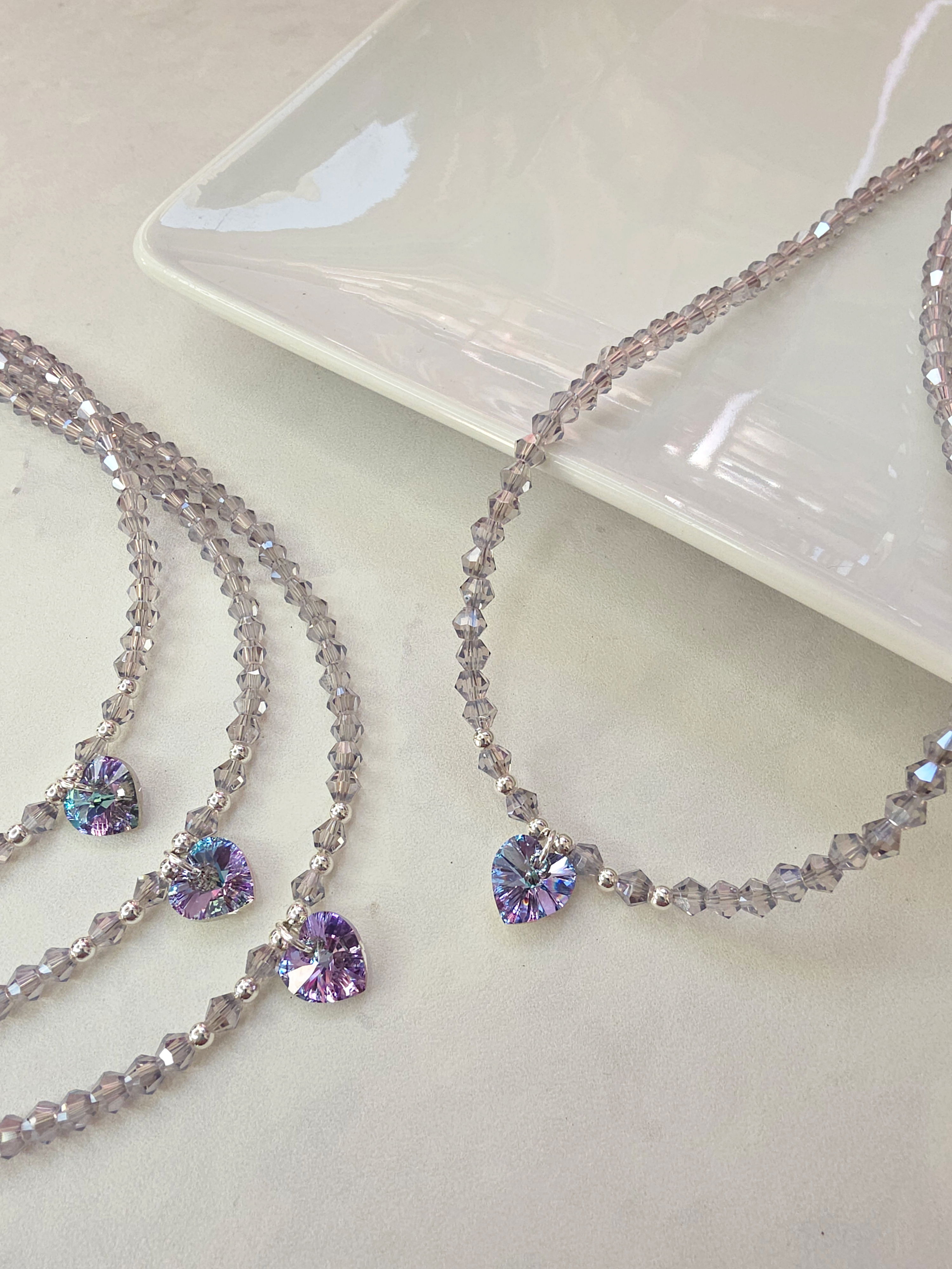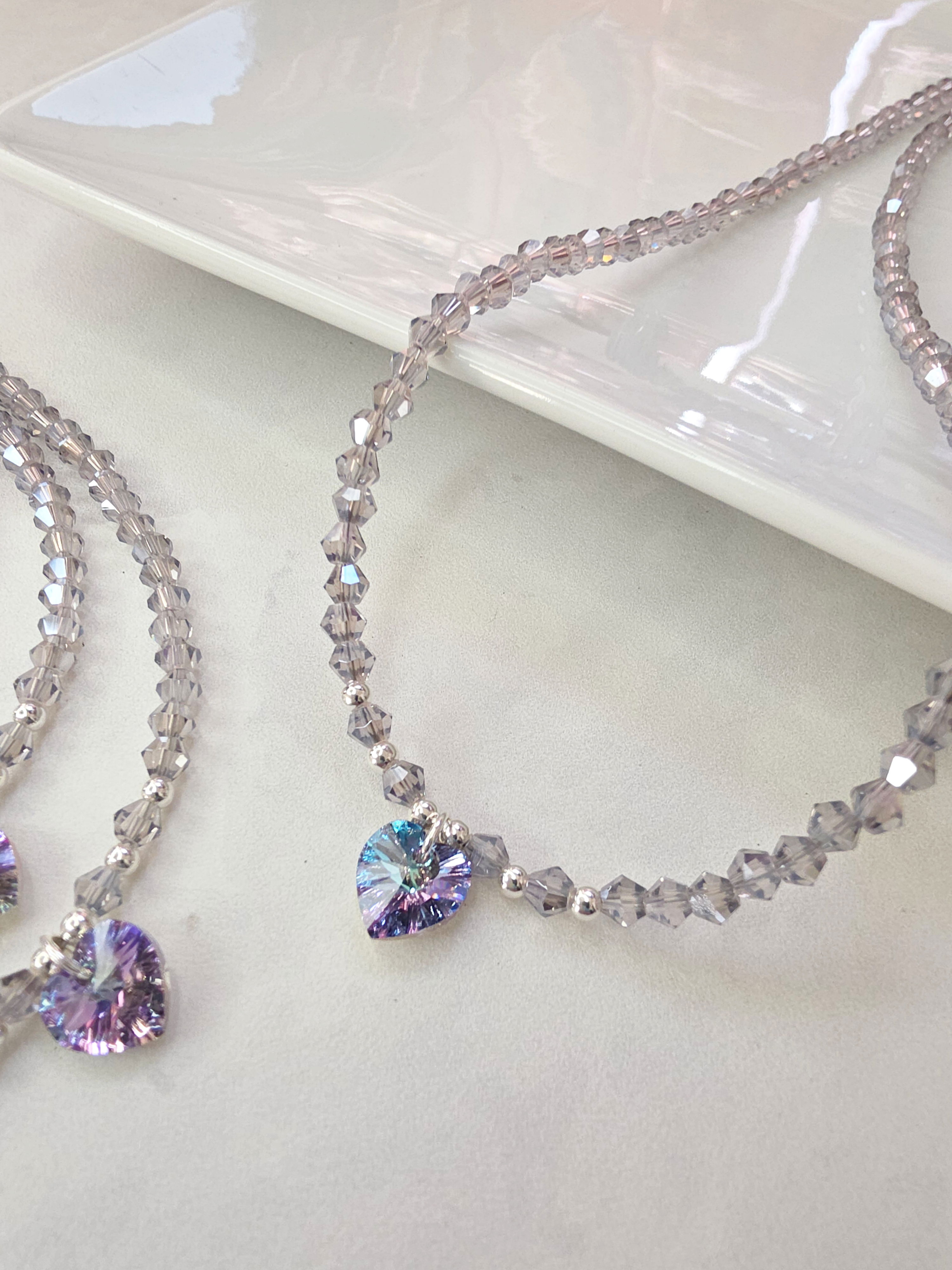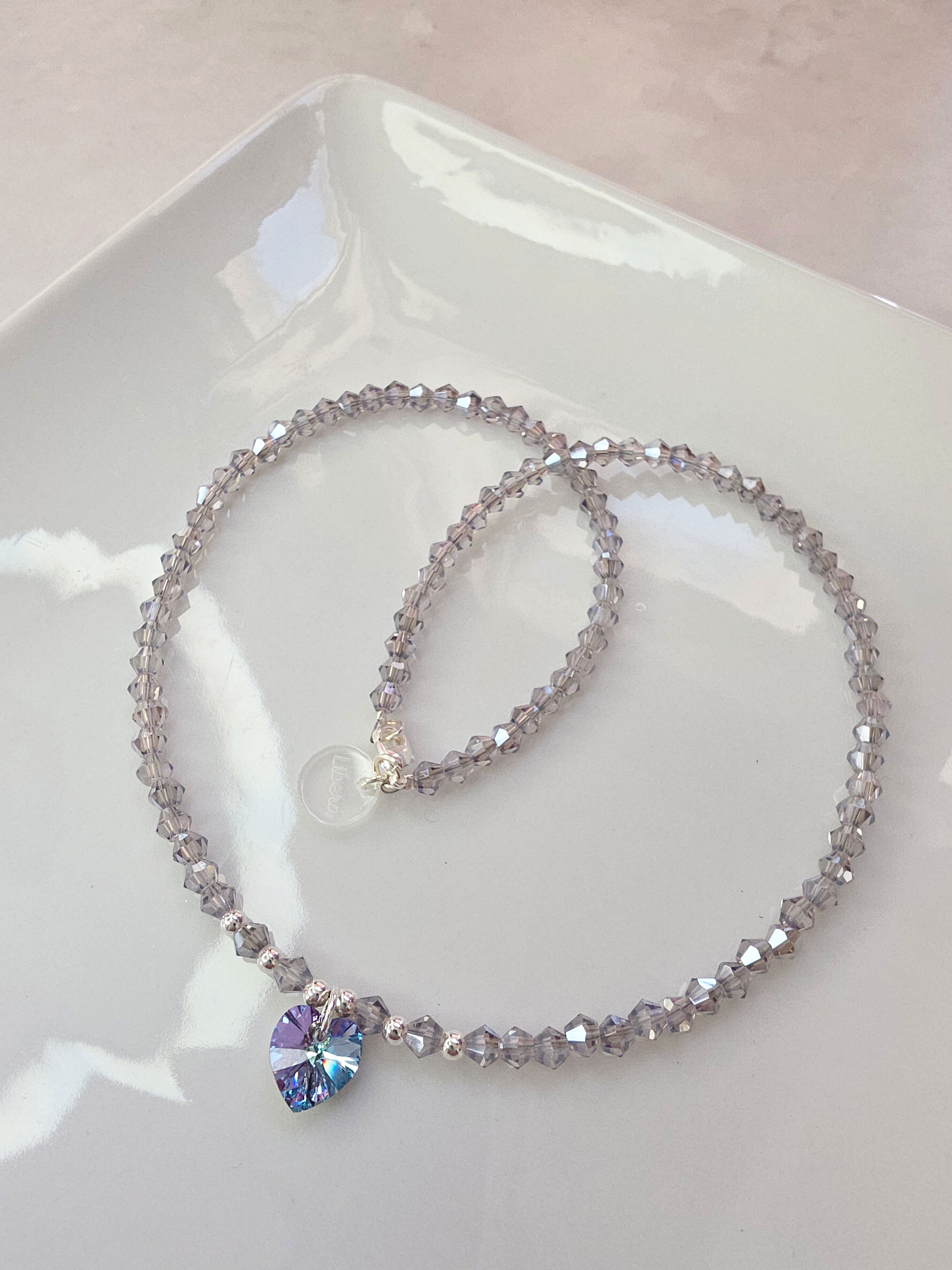 Collar de aproximadamente 40 cm. Compuesto por cristales cónicos, bolitas de Plata 925 y dije Corazón Swarovski Vitrail Light (Genuino, origen Austria).