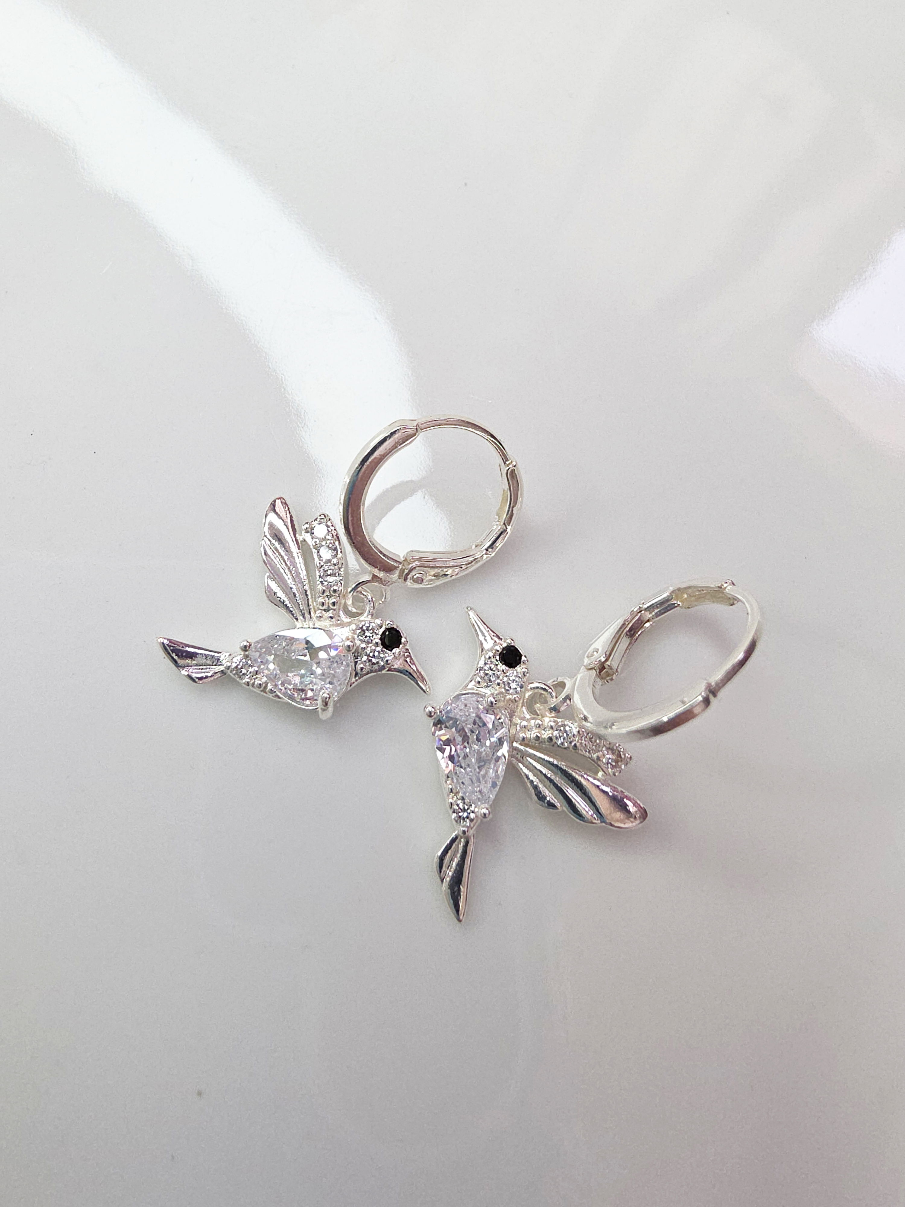 Aros de Acero Blanco con Colibrí con Cubic central y Micropave.