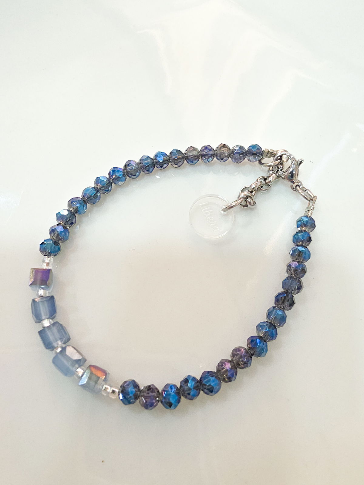 Pulsera compuesta por donas de cristal, mostacillas Checas calibradas marca Preciosa y cubitos de Cristal.