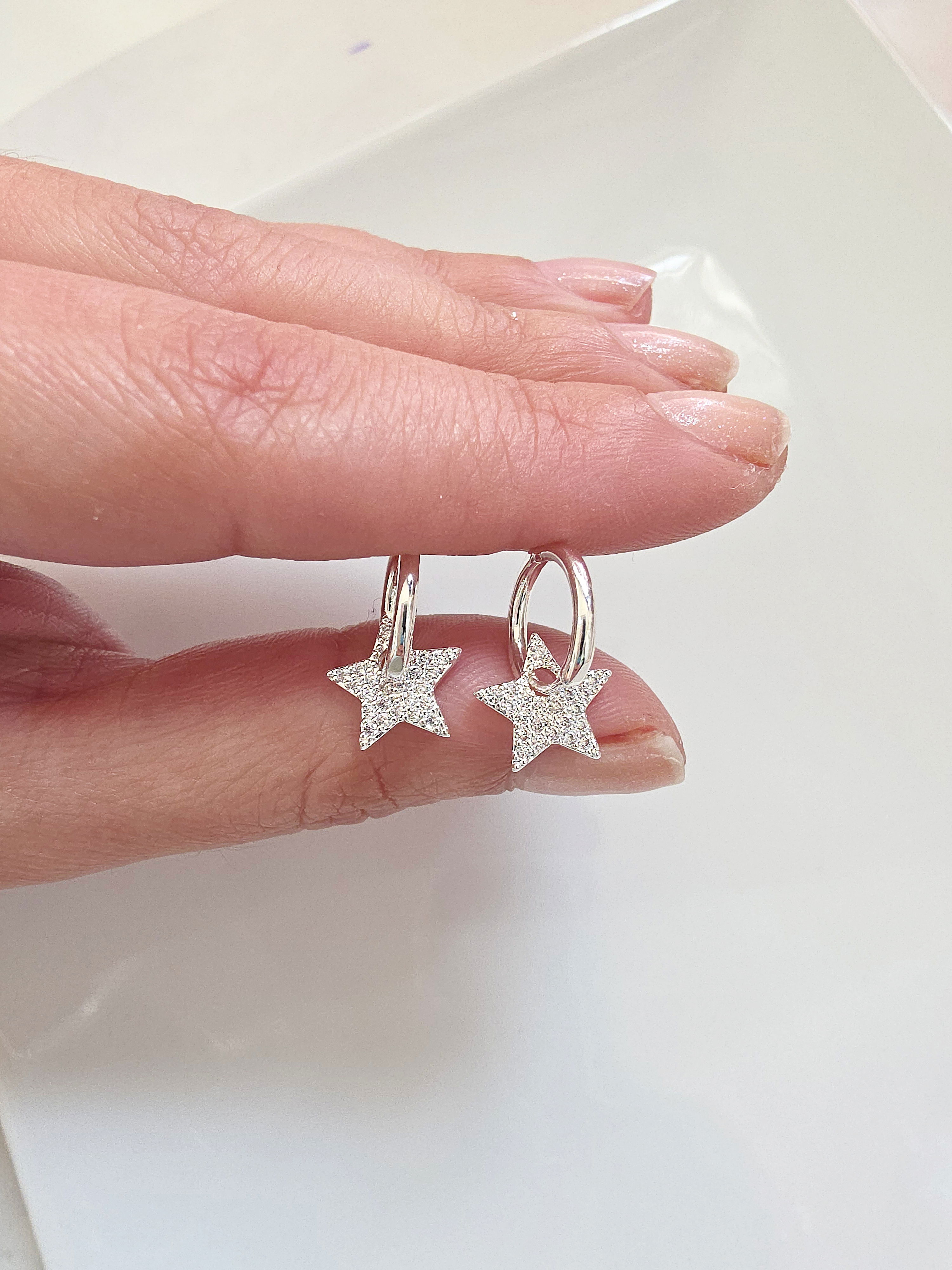 Aros tipo insert de Acero Blanco con dije con Micropave. Podés usarlos con o sin dije, es extraíble.