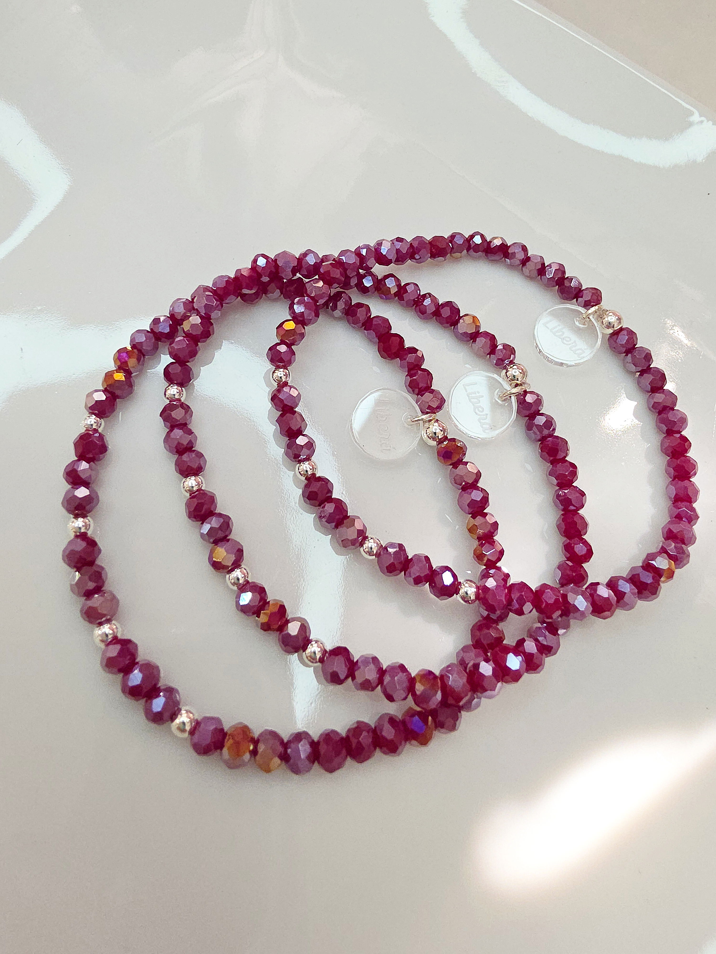 Pulsera elástica compuesta por donas de cristal y bolitas de Plata 925.