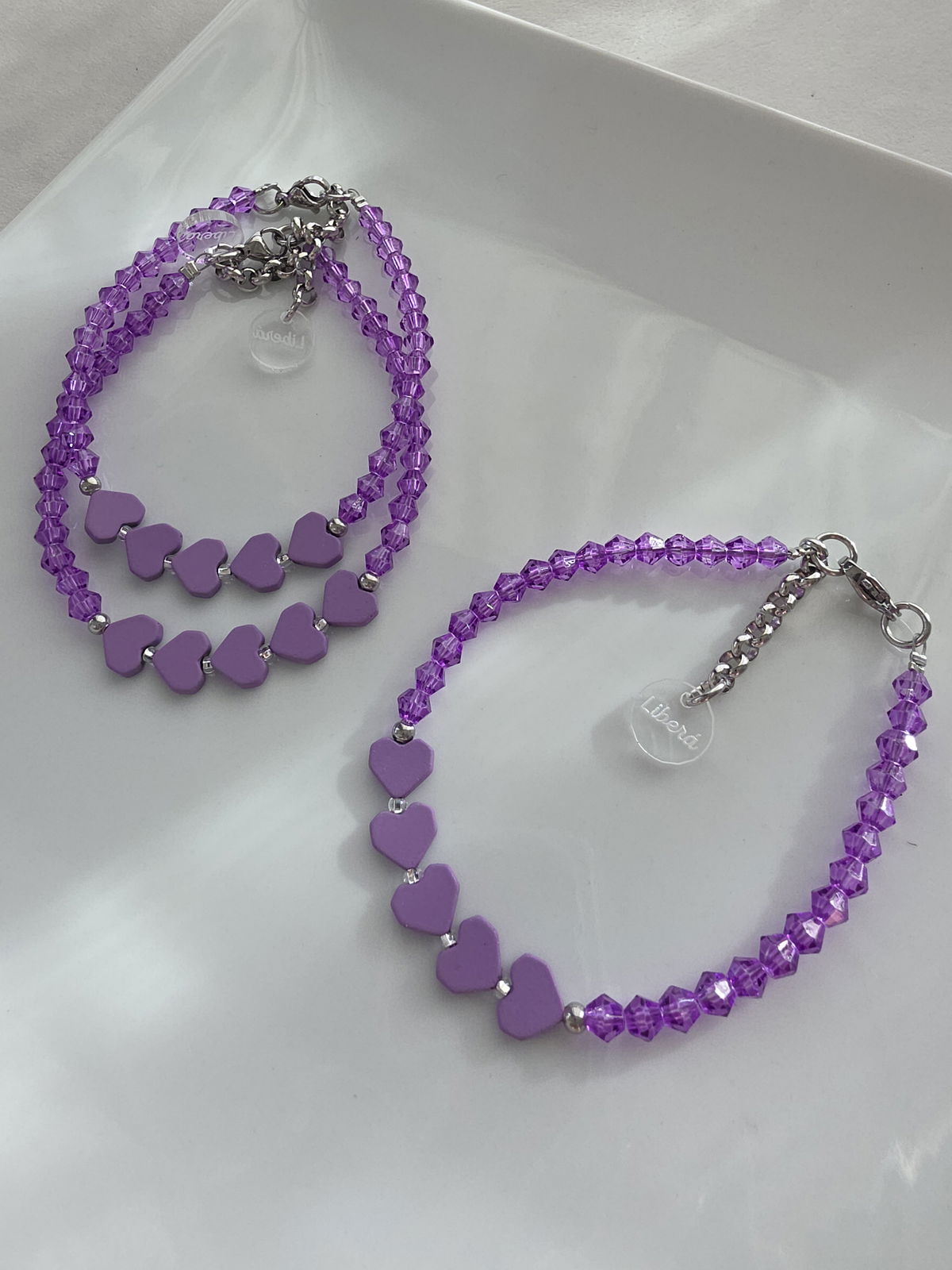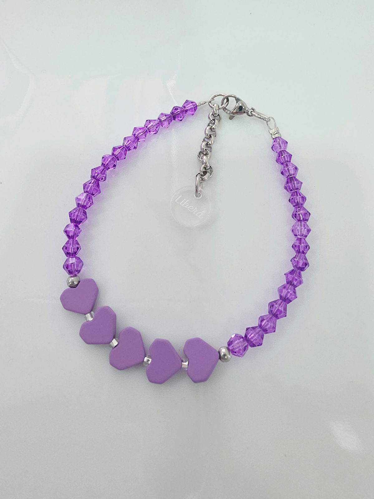 Pulsera compuesta por cristales cónicos, mostacillas Checas calibradas marca Preciosa y corazones de Hematite engomados al tono. Detalles, cierre y cadena de Acero Quirúrgico 316l.
