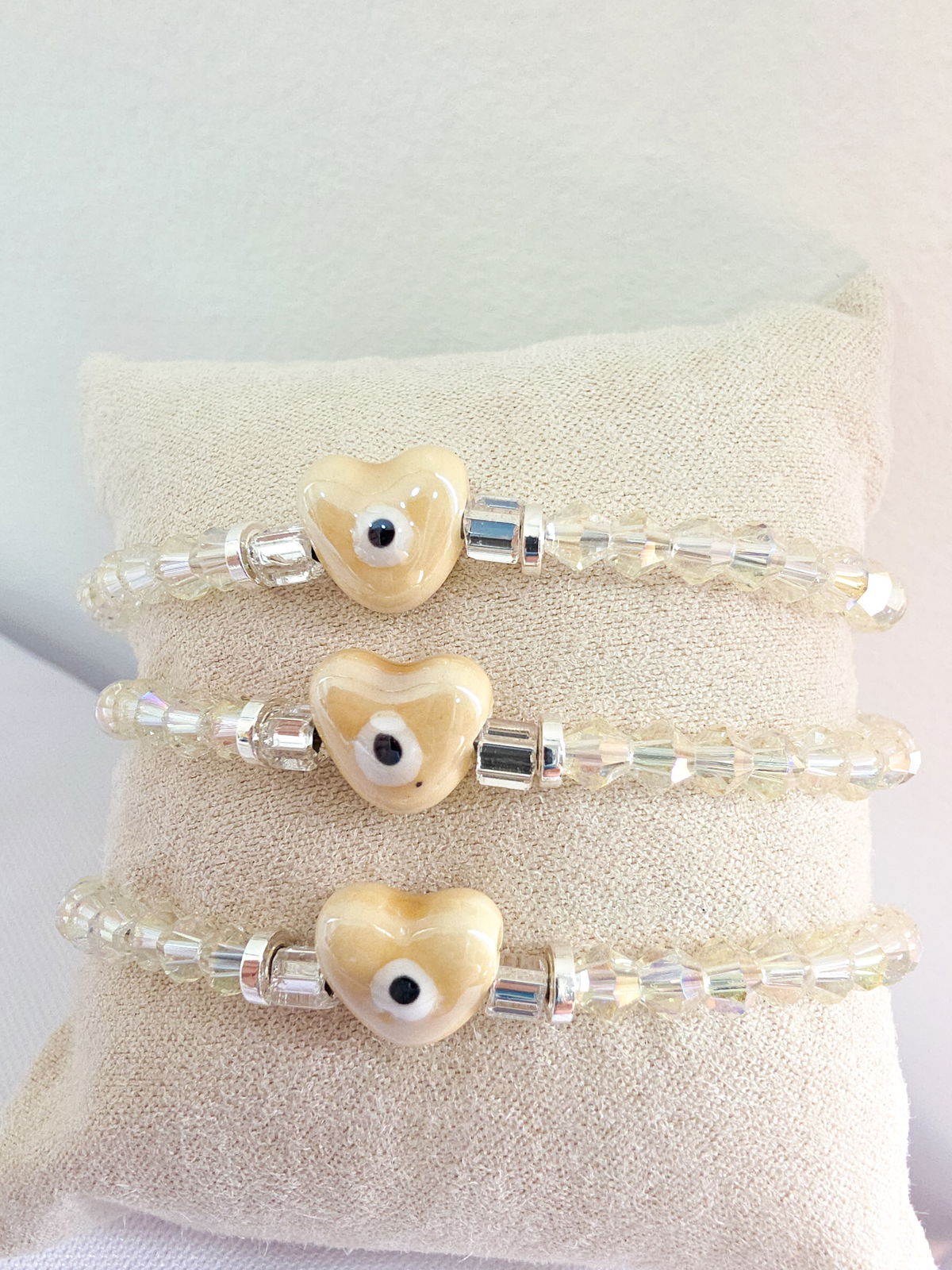 PULSERA - CORAZÓN CERÁMICA VAINILLA