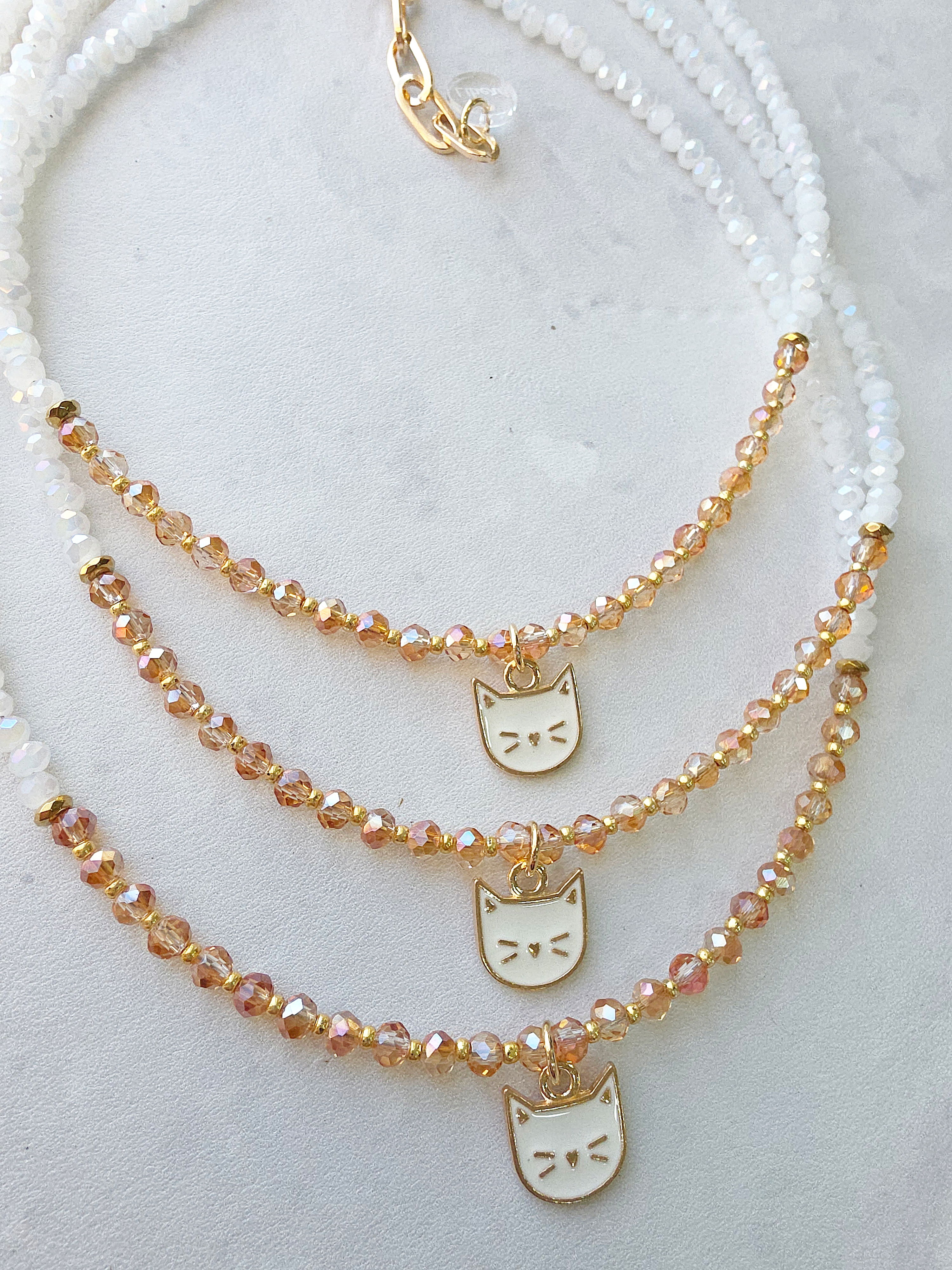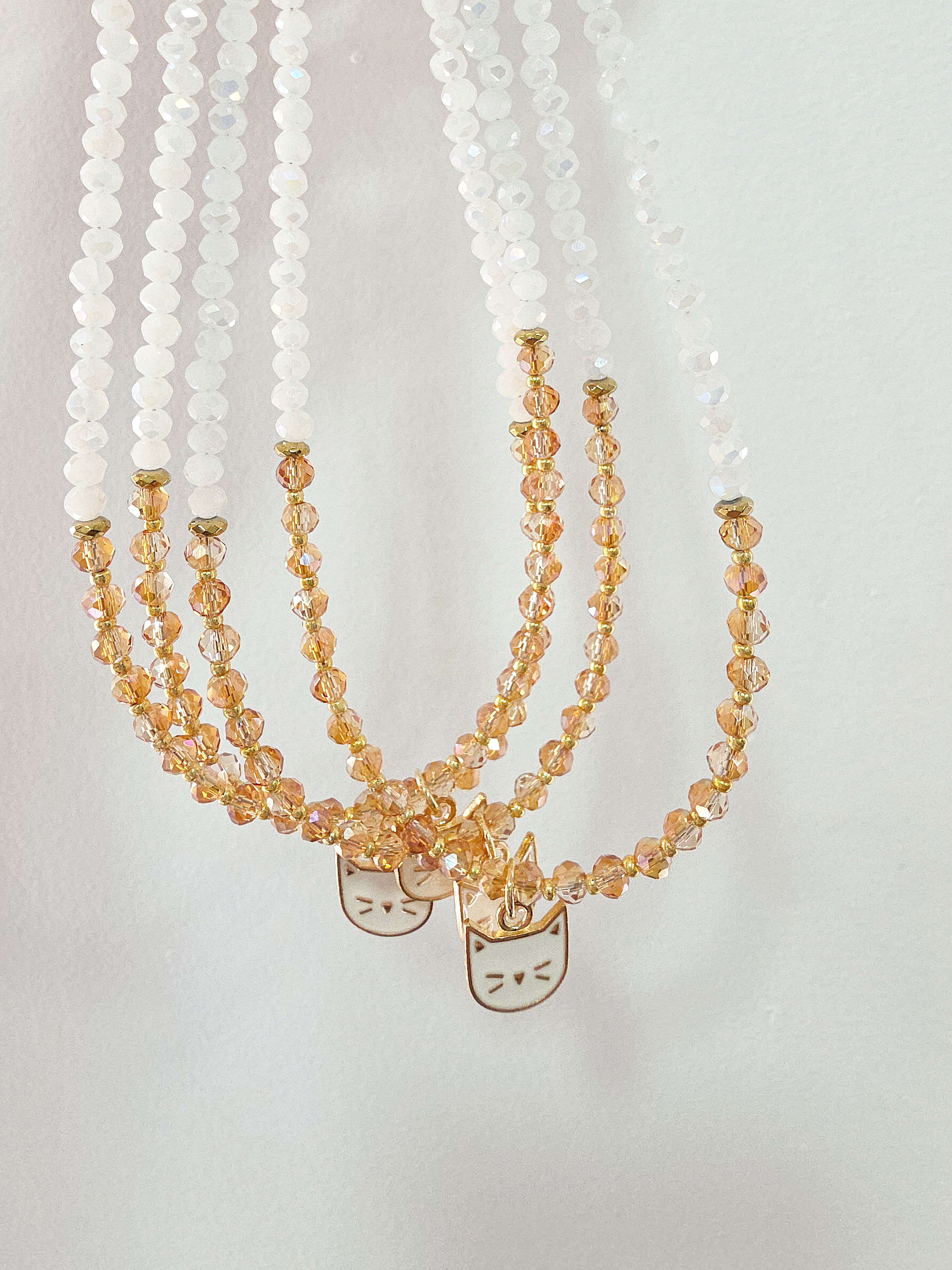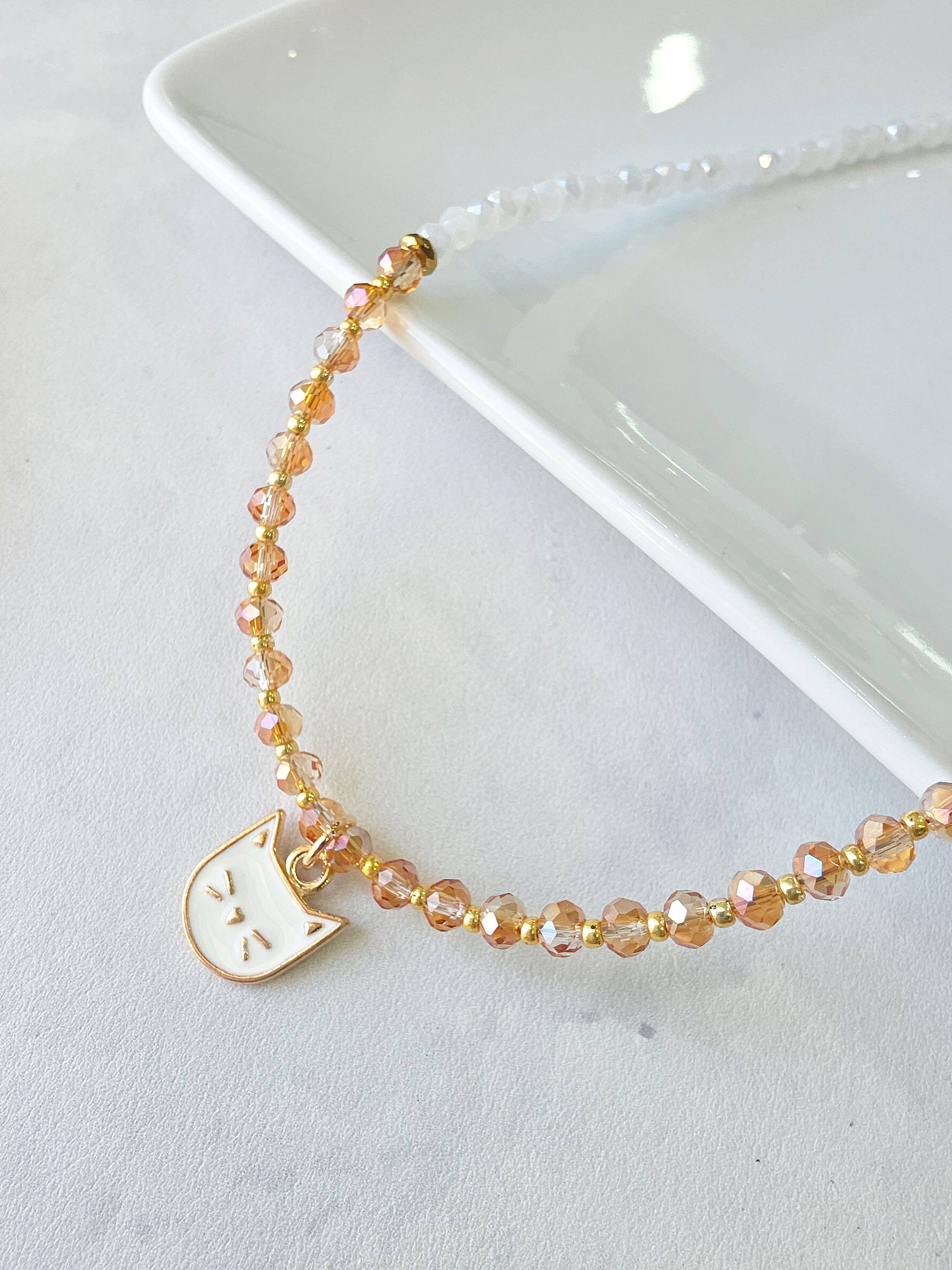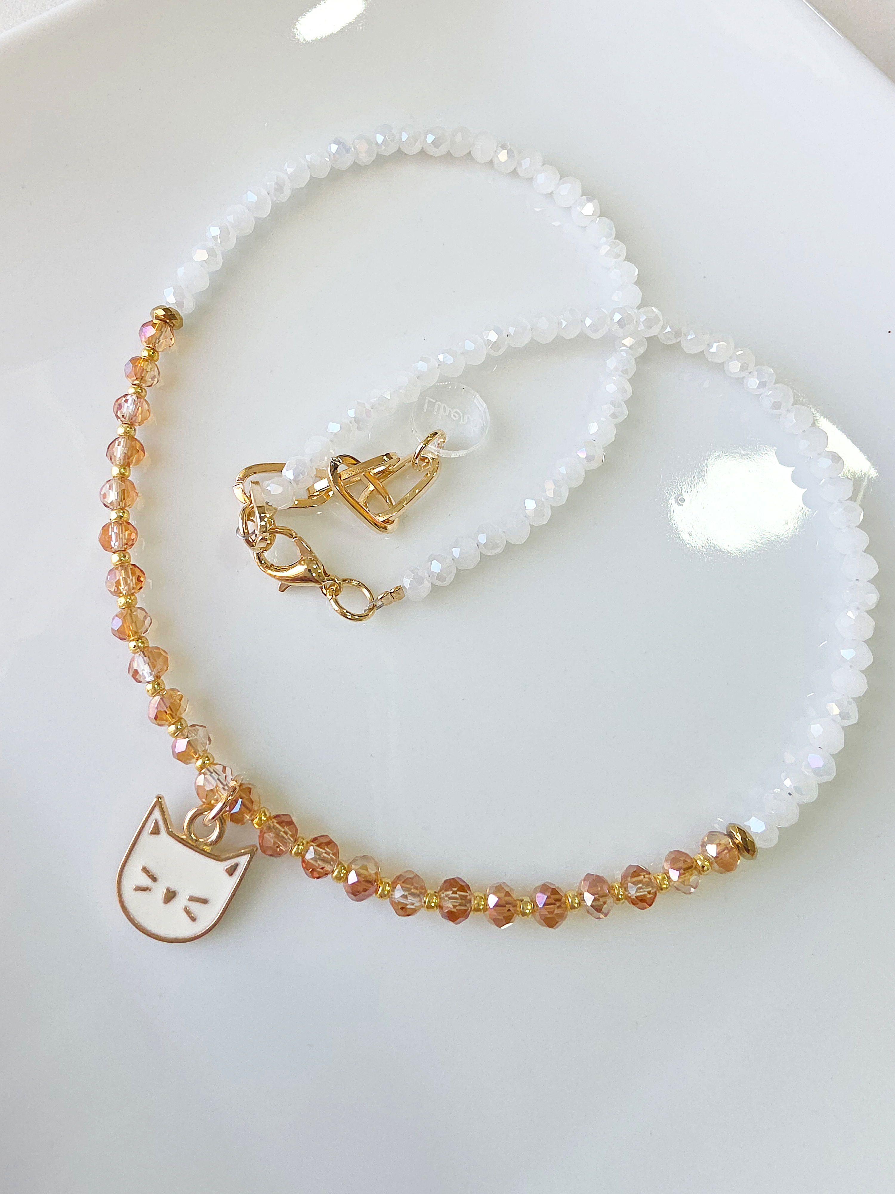 Collar de aproximadamente 40 cm (más cadena de alargue) compuesto por cristales, mostacillas Checas calibradas marca Preciosa, separadores de Hematite y dije Esmaltado.