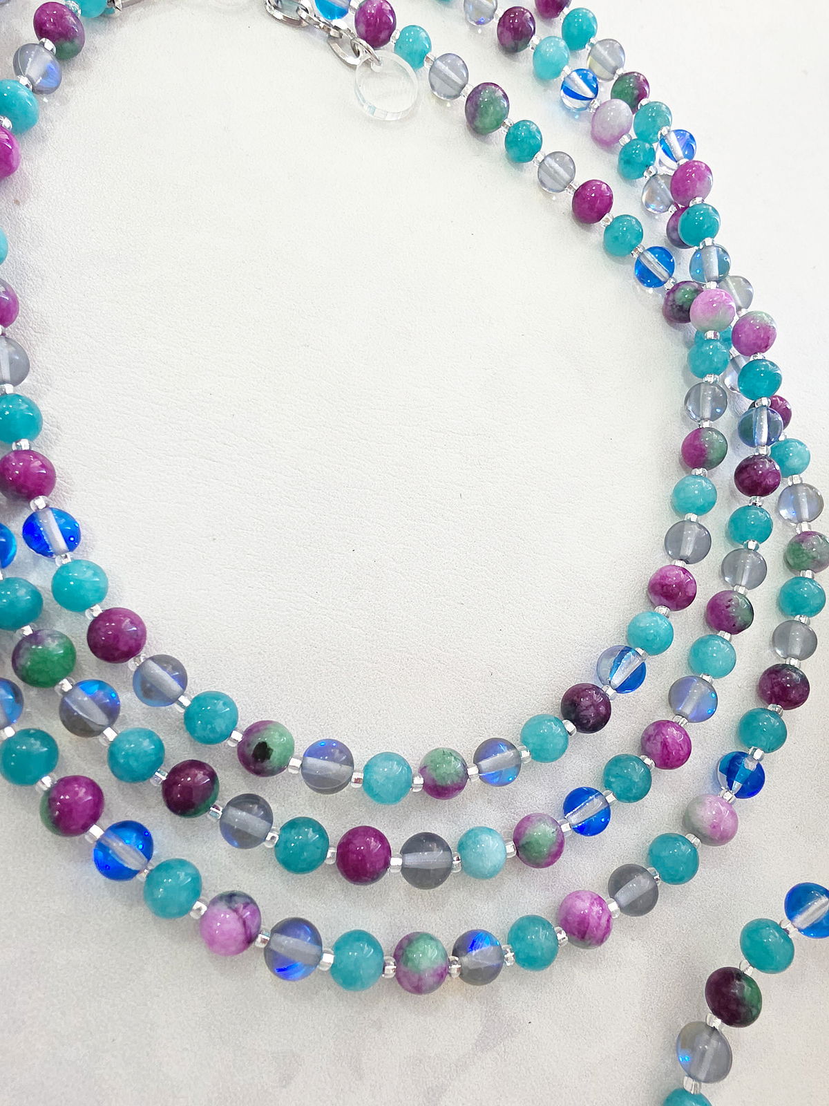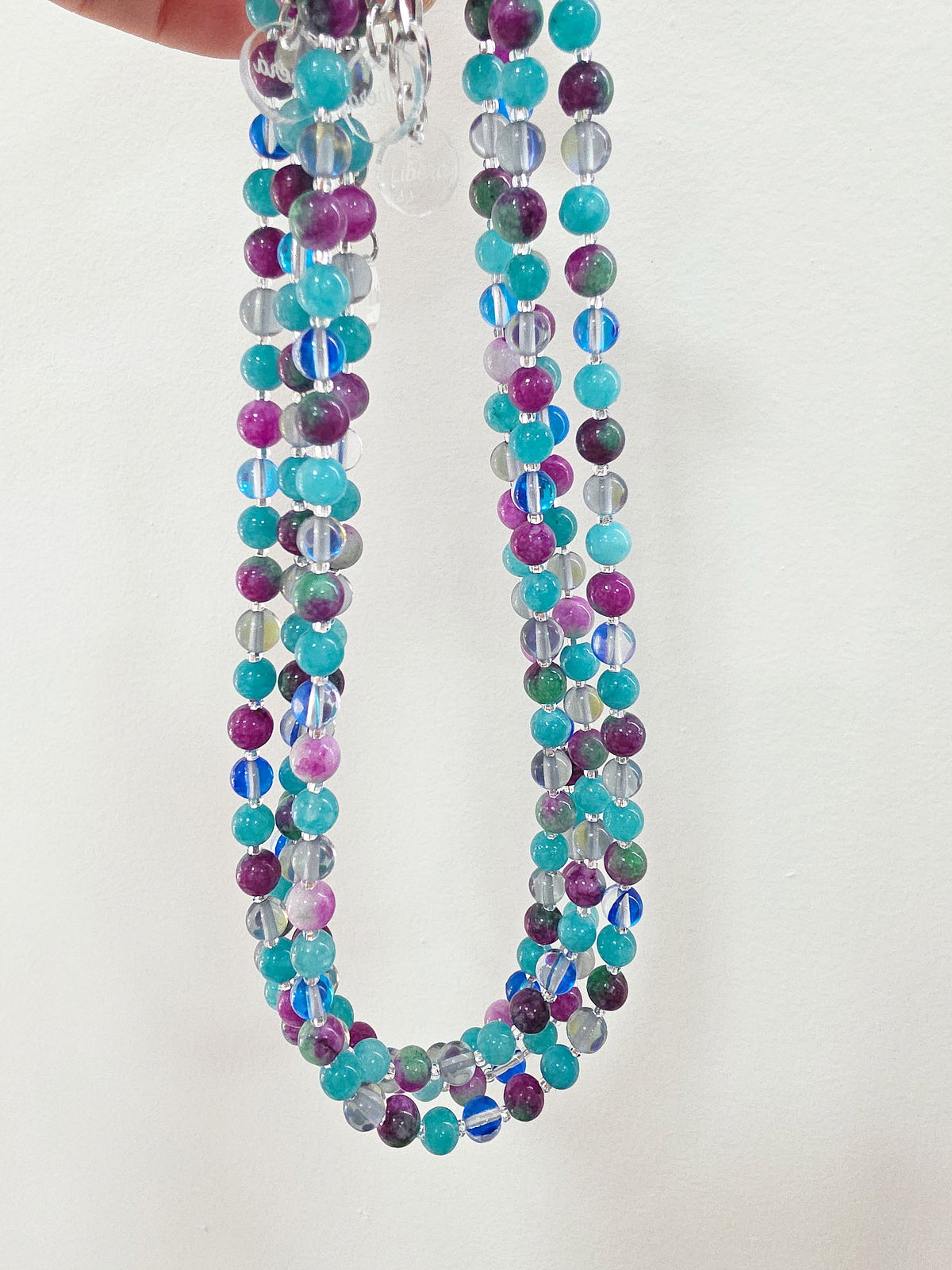 Collar de aproximadamente 40 cm (más cadena de alargue) compuesto en su totalidad por Piedras Naturales! Detalles, cierre y cadena de Alargue de Acero Quirúrgico 316l. Apto agua e hipoalergénico.