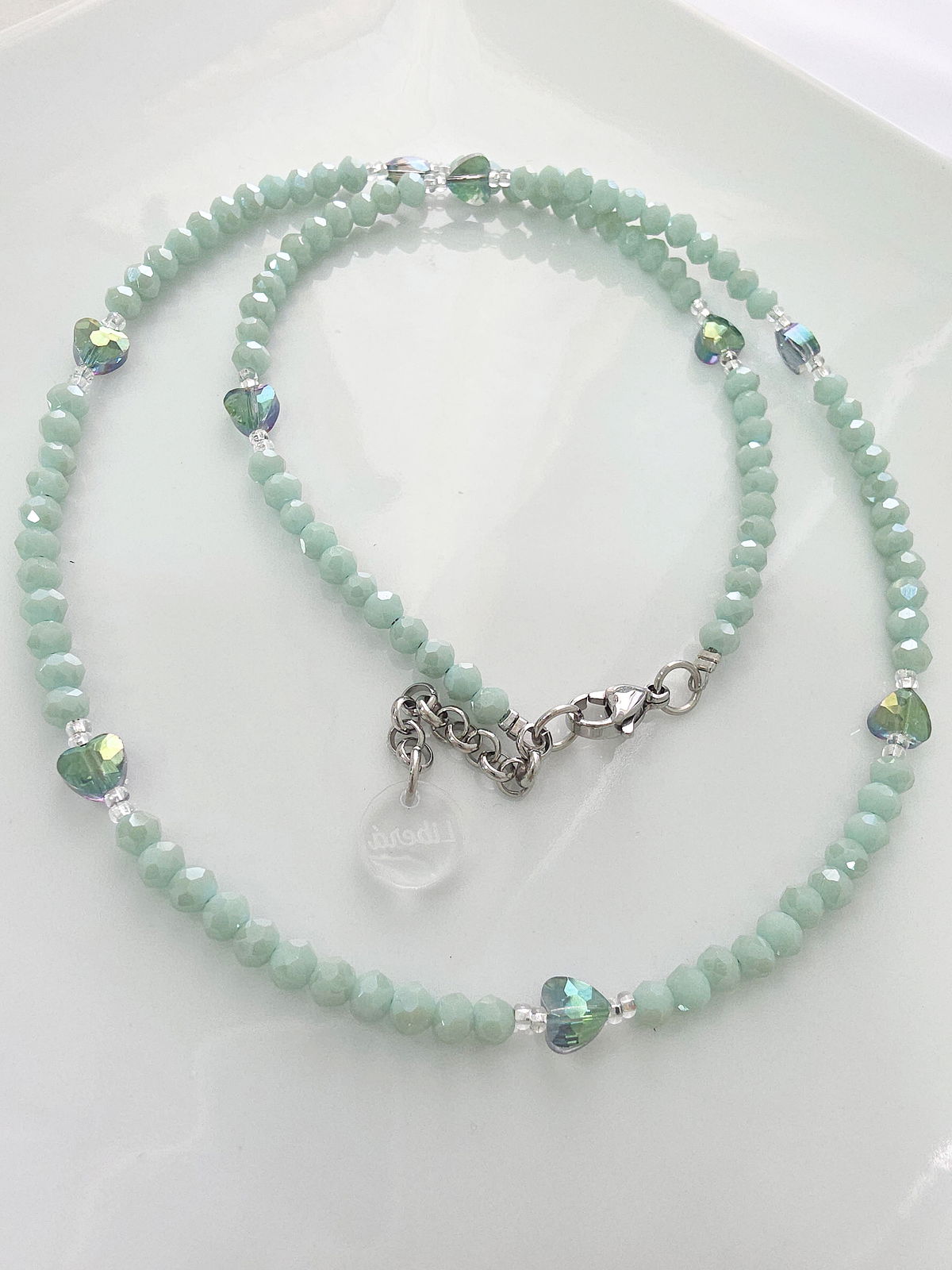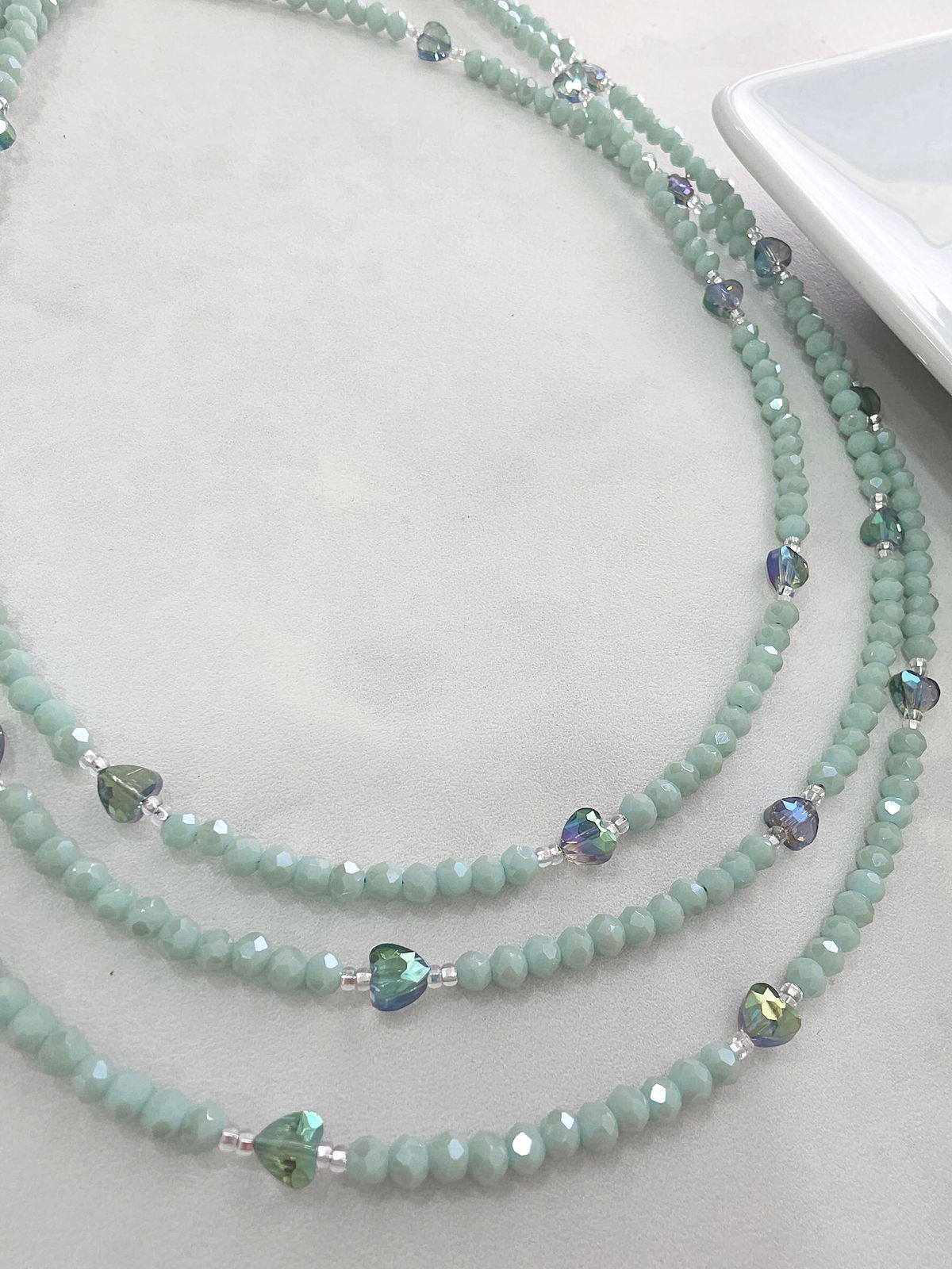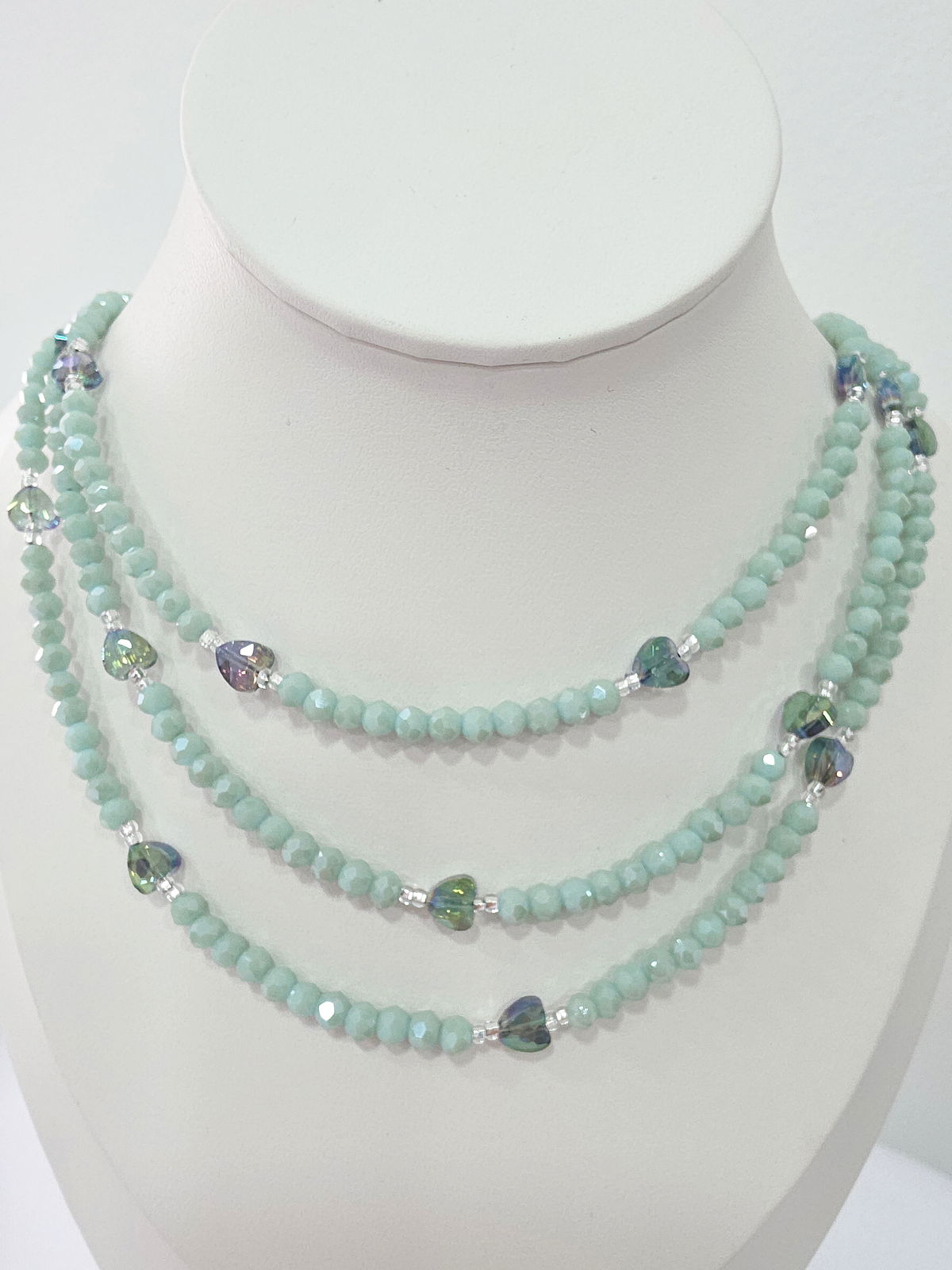 Compuesto de donitas de cristal, mostacillas Checas calibradas marca Preciosa y corazones de Cristal.