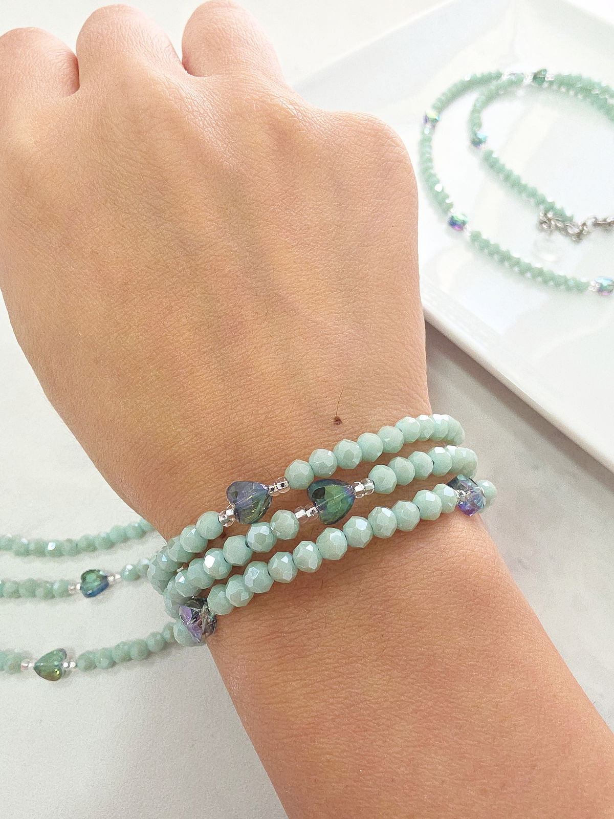 Accesorio doble uso! Podés usarlo como Collar de 55 cm (más cadena de alargue) o como Pulsera Triple!