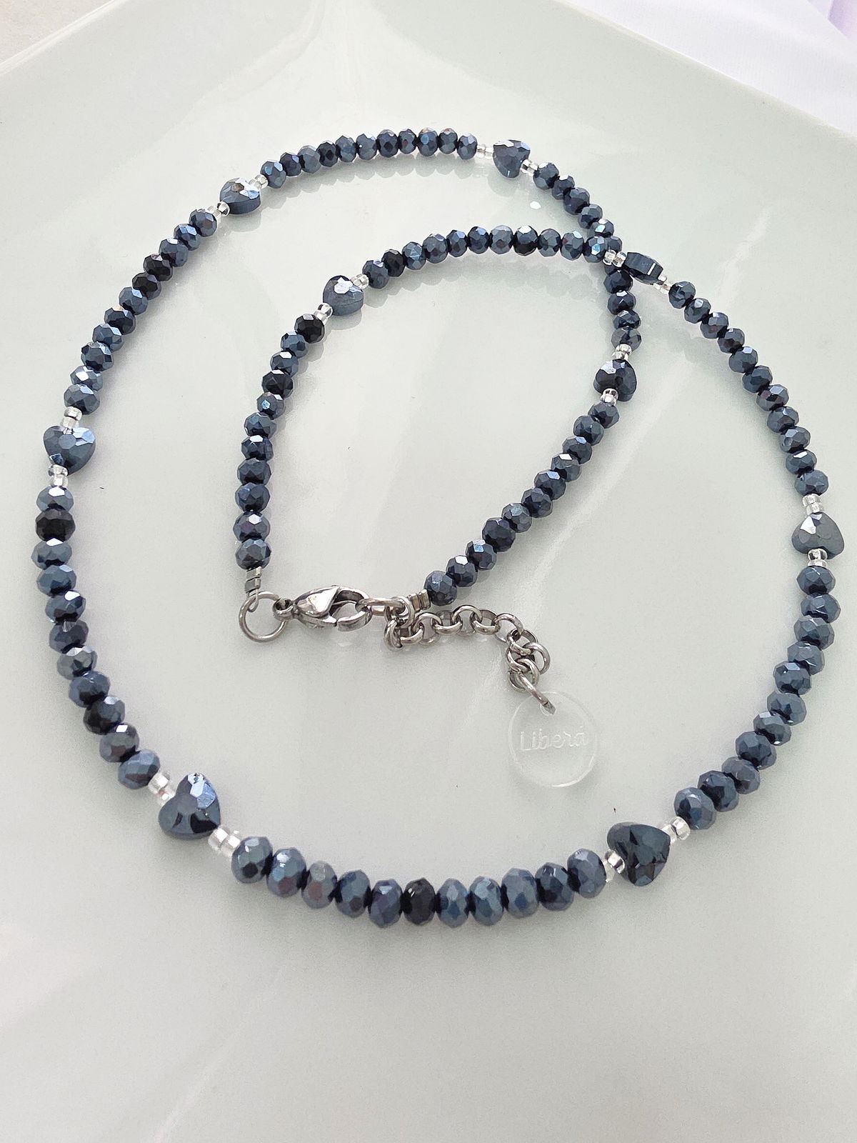 Compuesto de donitas de cristal, mostacillas Checas calibradas marca Preciosa y corazones de Cristal.