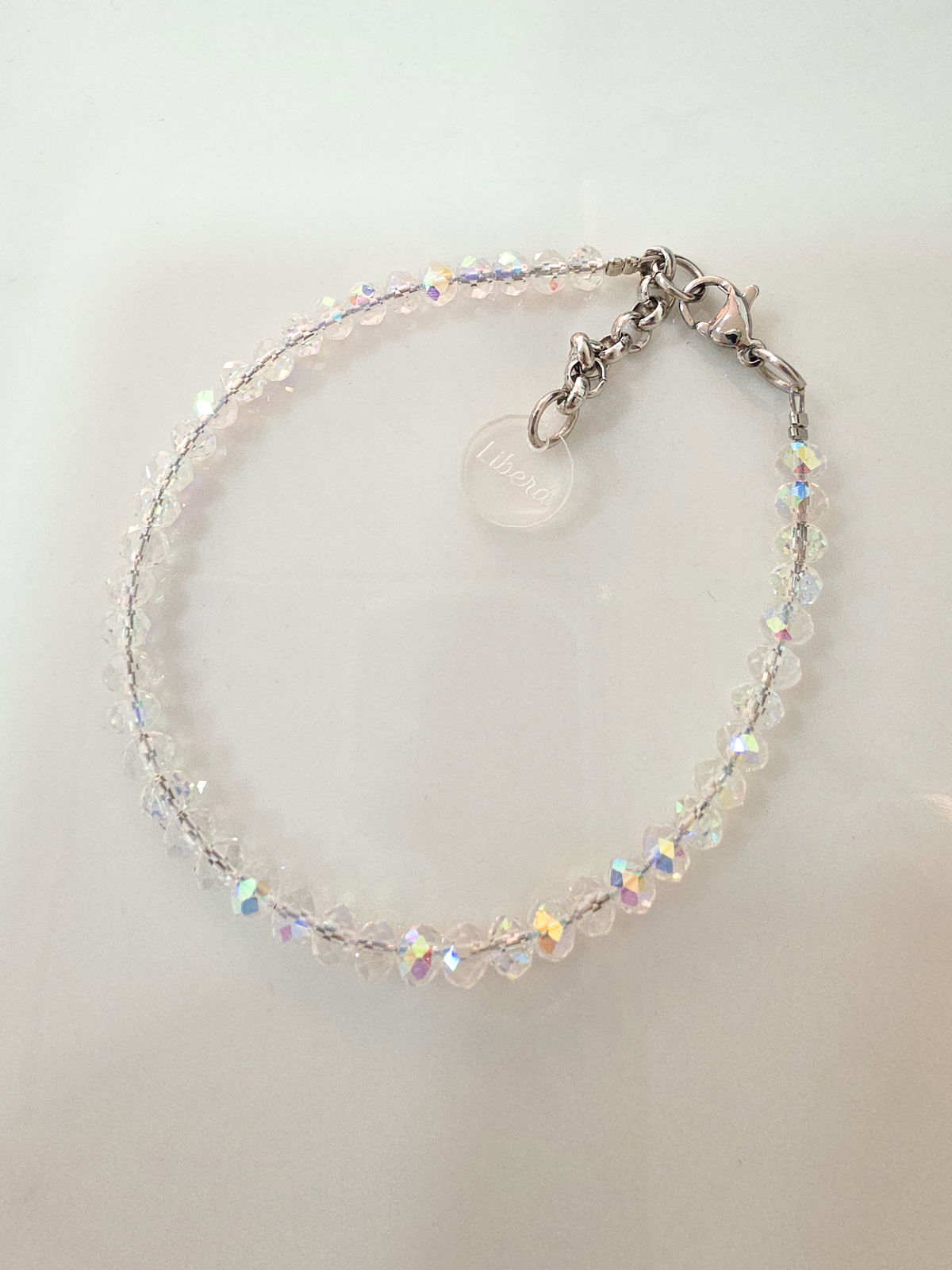 Pulsera compuesta por donitas de cristal, terminaciones, cierre y cadena de Acero Quirúrgico 316l.