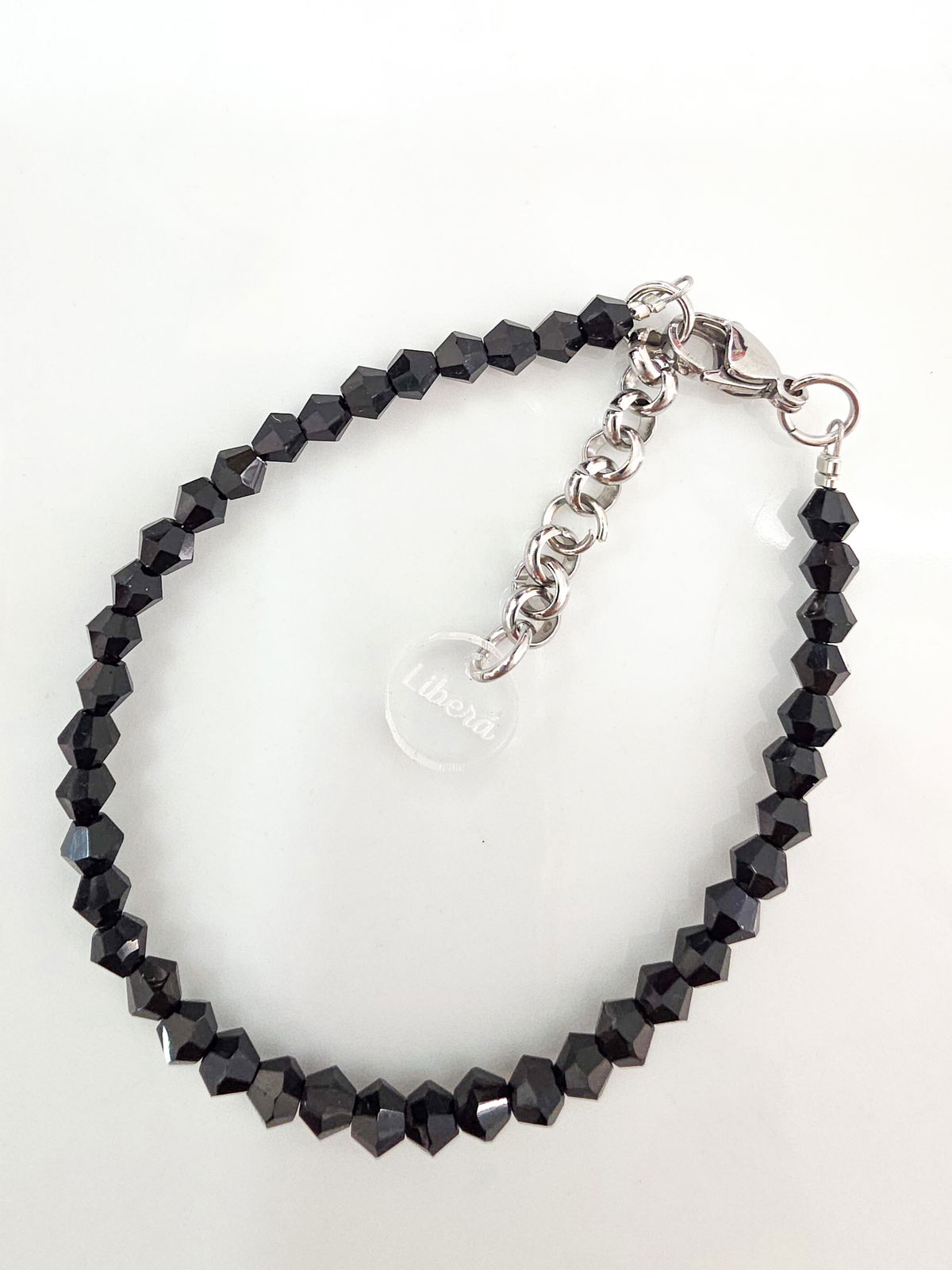 Pulsera compuesta por cristales cónicos. Detalles, cierre y cadena de Acero Quirúrgico 316l.