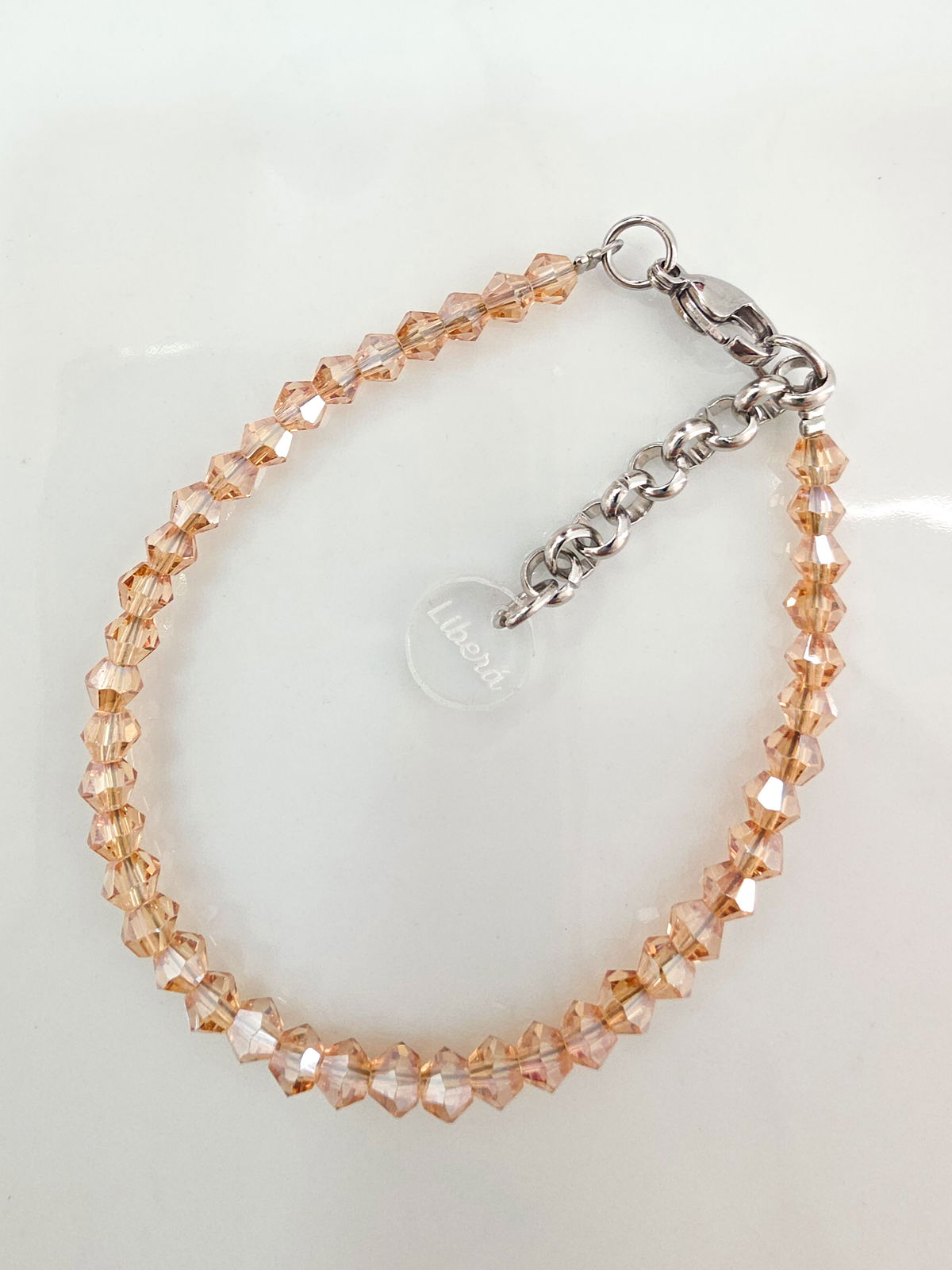 Pulsera compuesta por cristales cónicos. Detalles, cierre y cadena de Acero Quirúrgico 316l.
