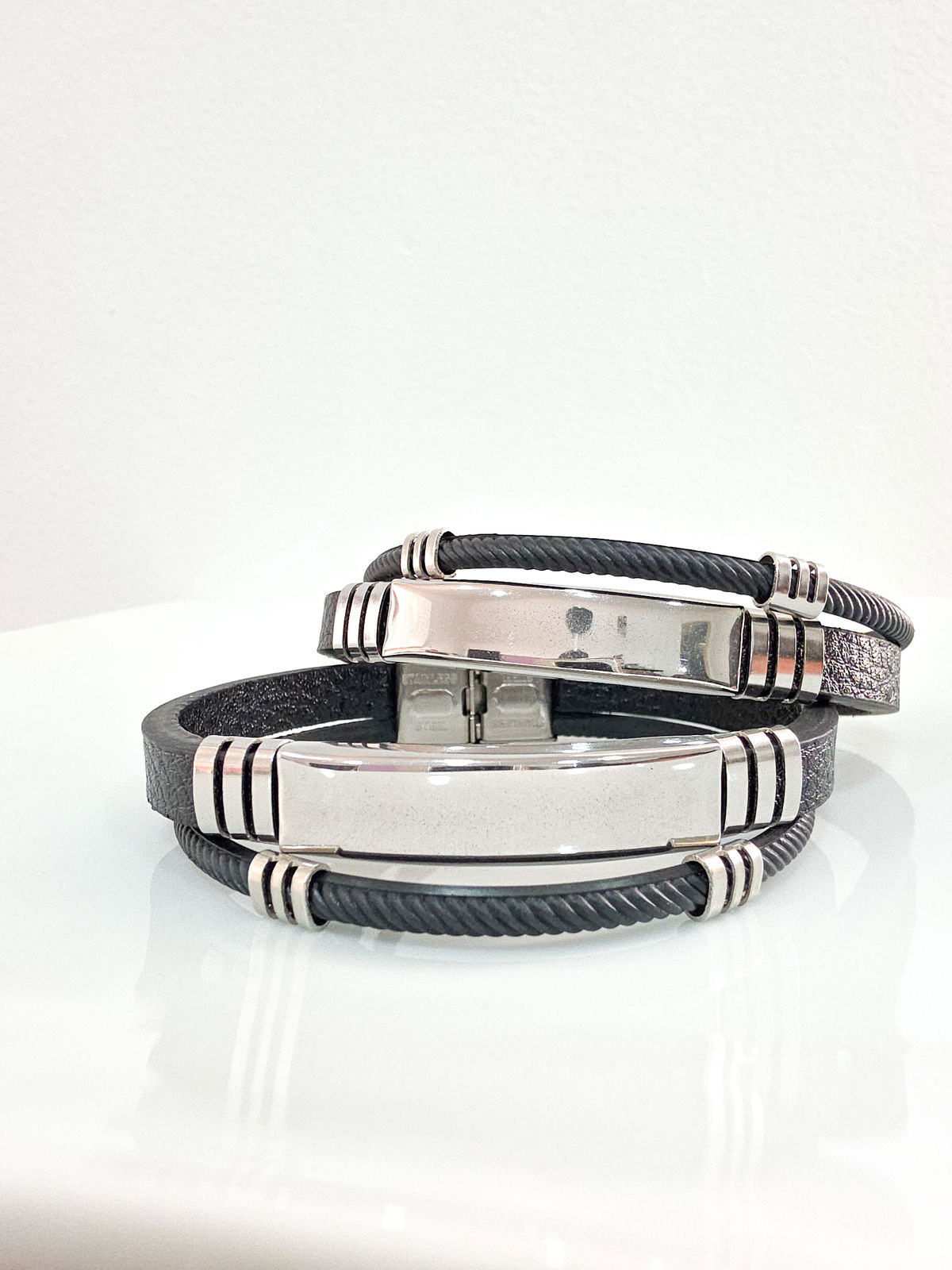 Pulsera de hombre de Cuerina y Acero Quirúrgico.