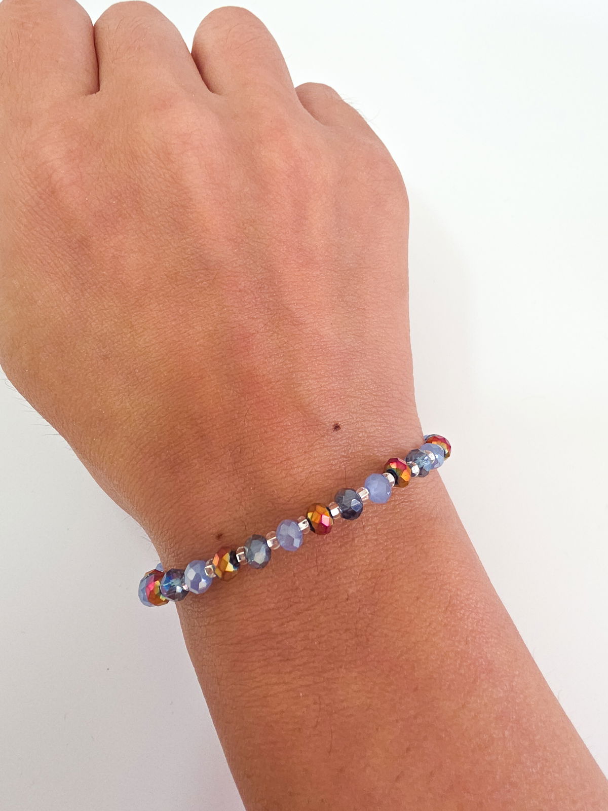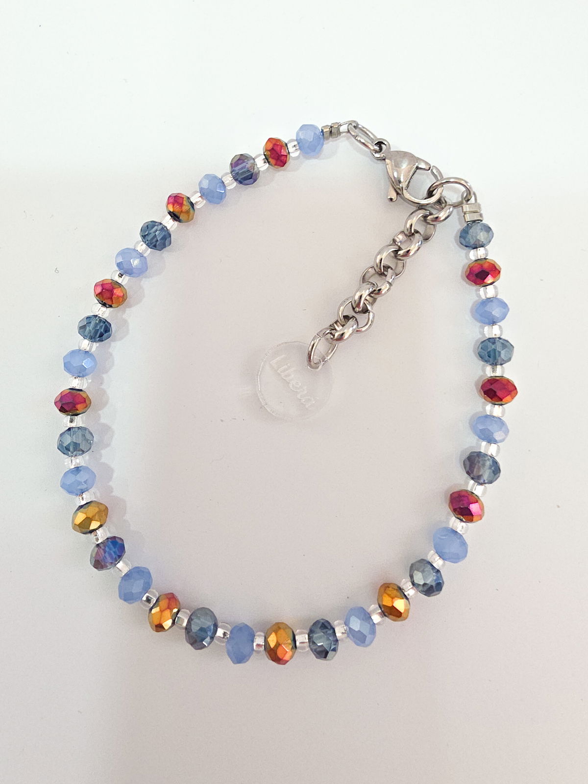 Pulsera compuesta por cristales y mostacillas Checas calibradas marca Preciosa. Cierre, detalles y cadena de alargue de Acero Quirúrgico 316l. Apta agua e hipoalergénica.
