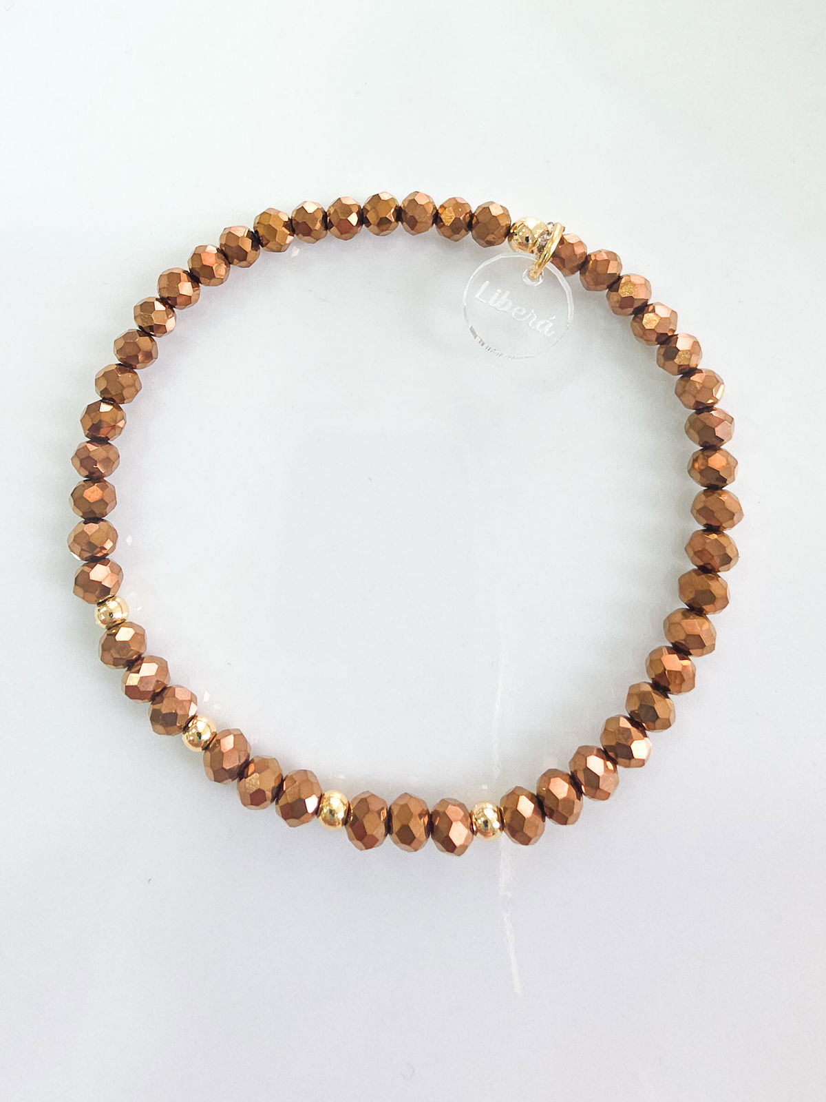 Pulsera elástica compuesta por cristales y bolitas Laminadas en Oro 18k. Podés hacer el conjunto con su Collar.